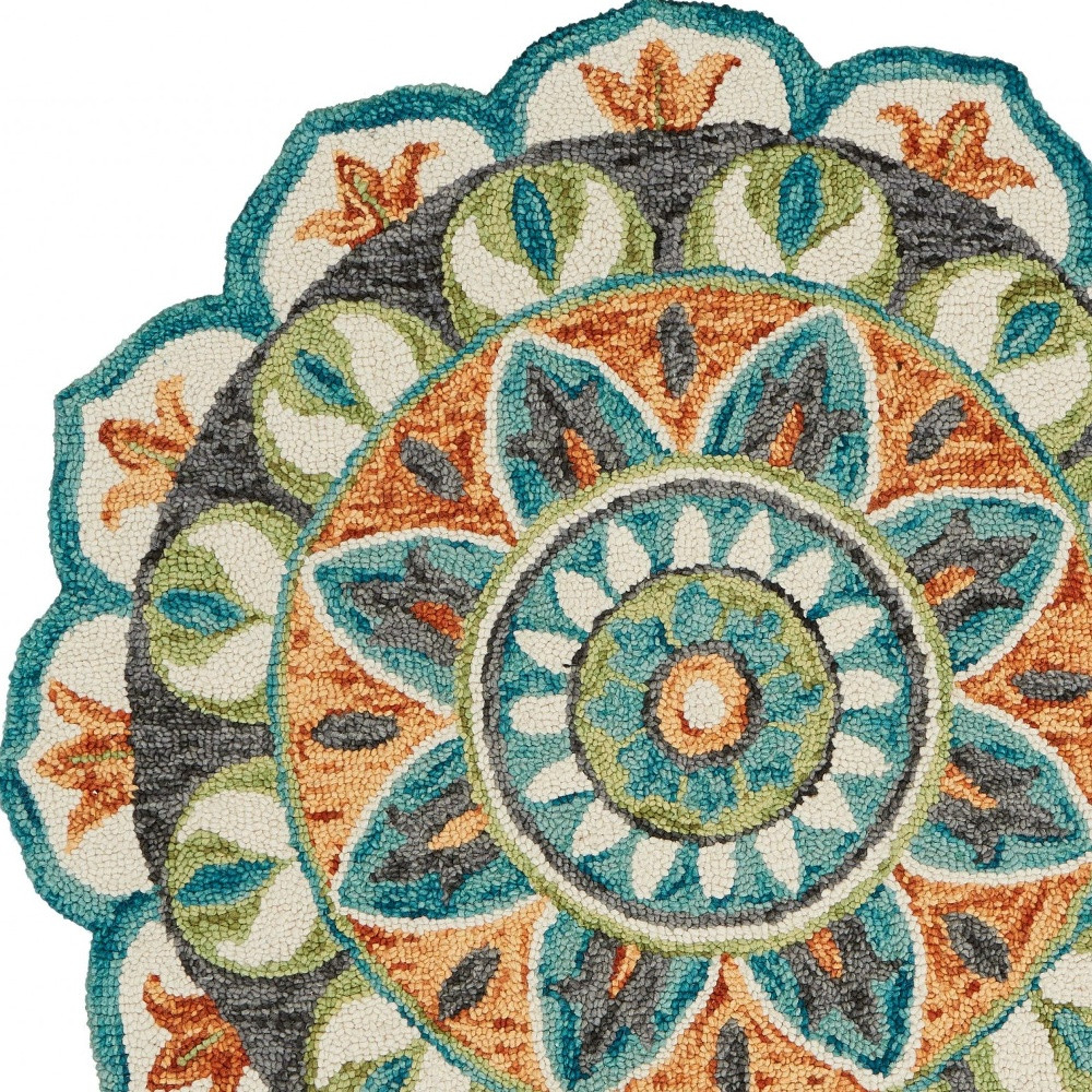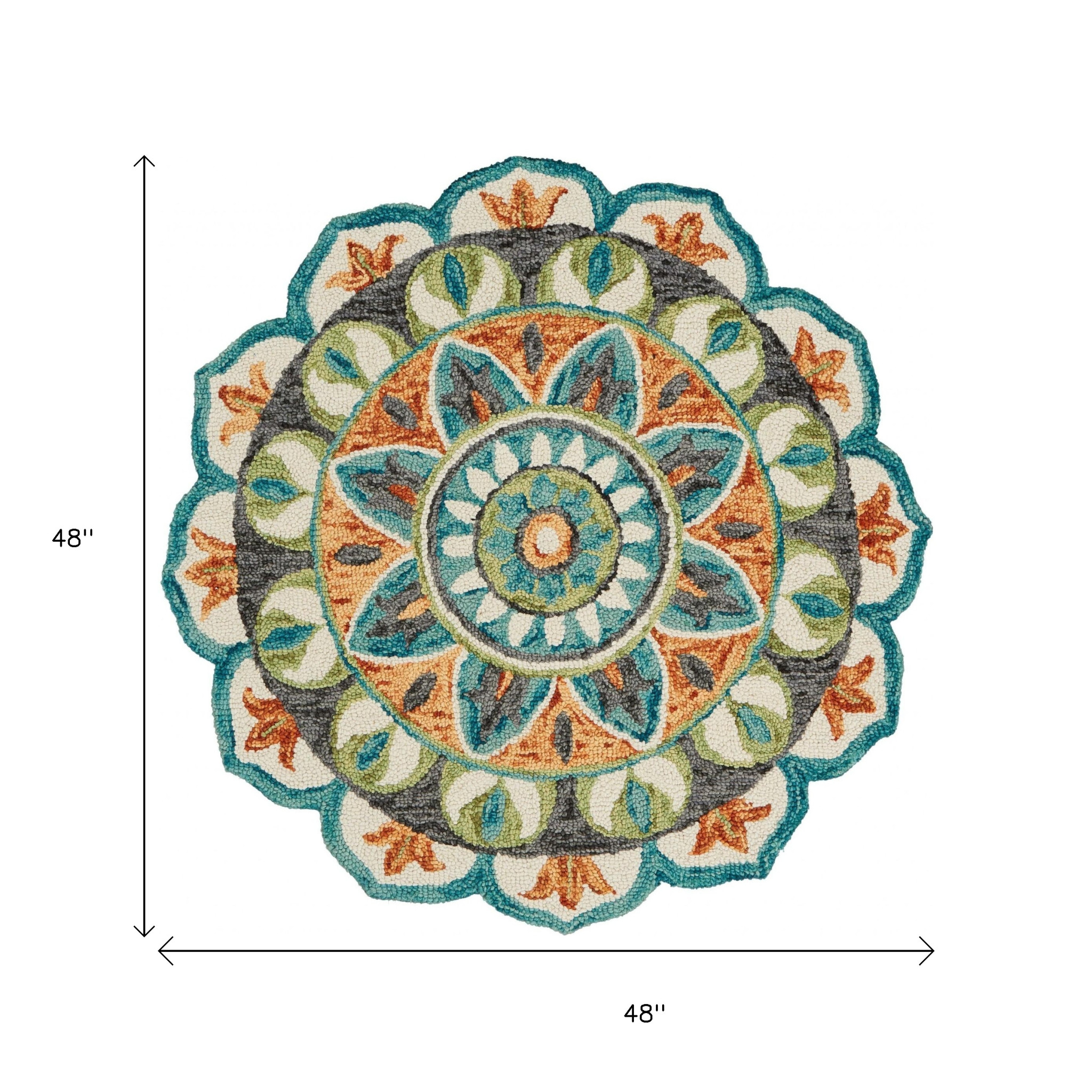 Flaunt your love for floral art on the floor with this mesmerizing Round Blue and Orange Medallion Area Rug that exhibits a blend of warm and cool-toned hues for visual intrigue. With layers of floral pattern in the vibrant shades of blue, orange, green and ivory allures the gaze while the petal0like edges take this piece to the next level. Made to last long for years, this rug is handcrafted with 100% virgin wool for enhanced durability, softness, and the ability to wick away moisture and let your skin breathe. The soft pile construction makes it an ideal piece to flaunt in any high-traffic areas without losing its shape and shine. Bring home this spectacular area rug and it will blend in with its surroundings while being the centerpiece of the room. 48”