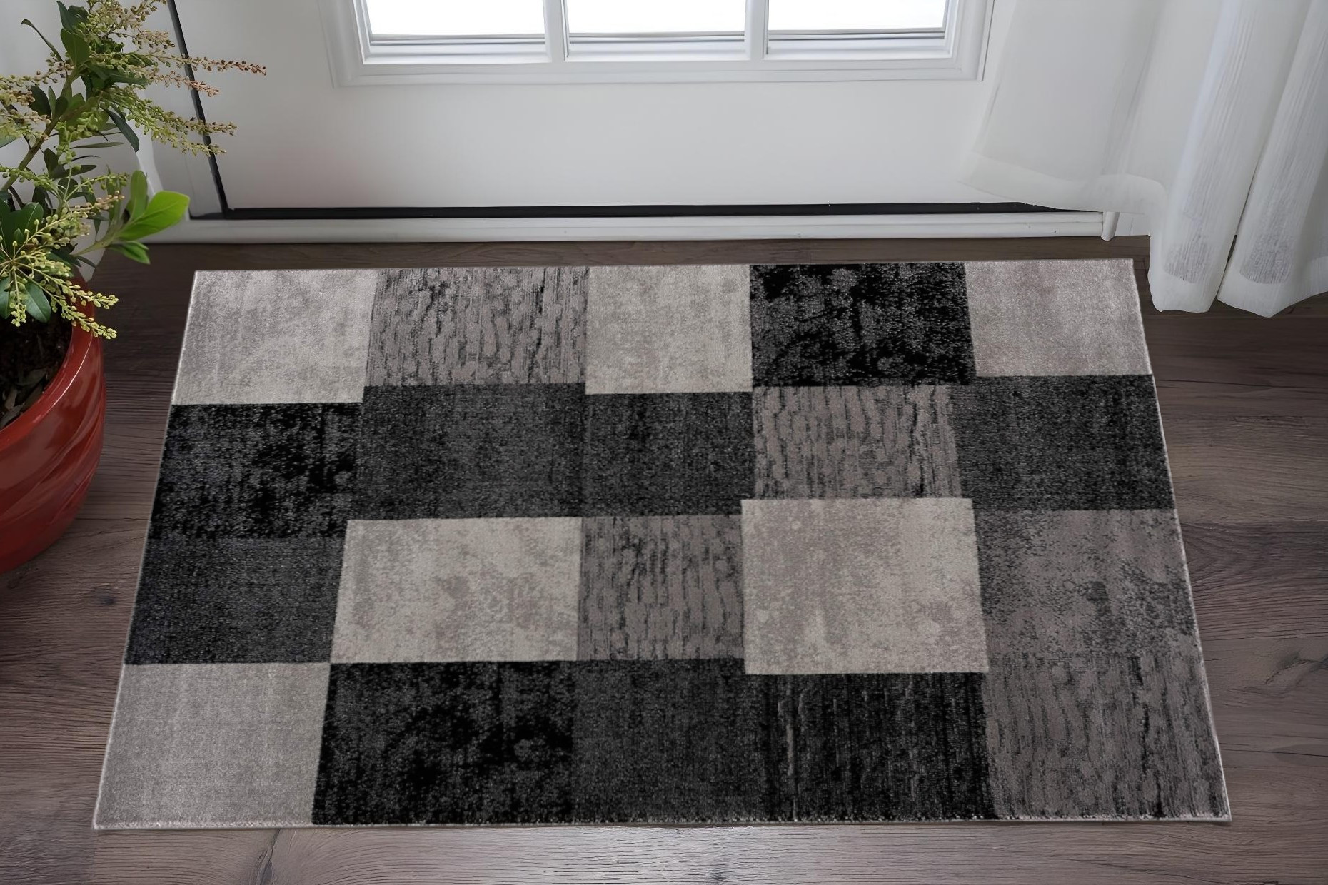 Add some artistry to your room with this 2' x 5' grey checkered area rug. This rectangle shaped rug features a checkered design in grey to give it visual interest. A classic shape marries with good looking design for your space This superior Turkish rug represents the highest quality and is built to last. Place this area rug against a hardwood or tile floor and it will enliven your living space with style and sophistication. 0.8" H x 27" W x 60" D