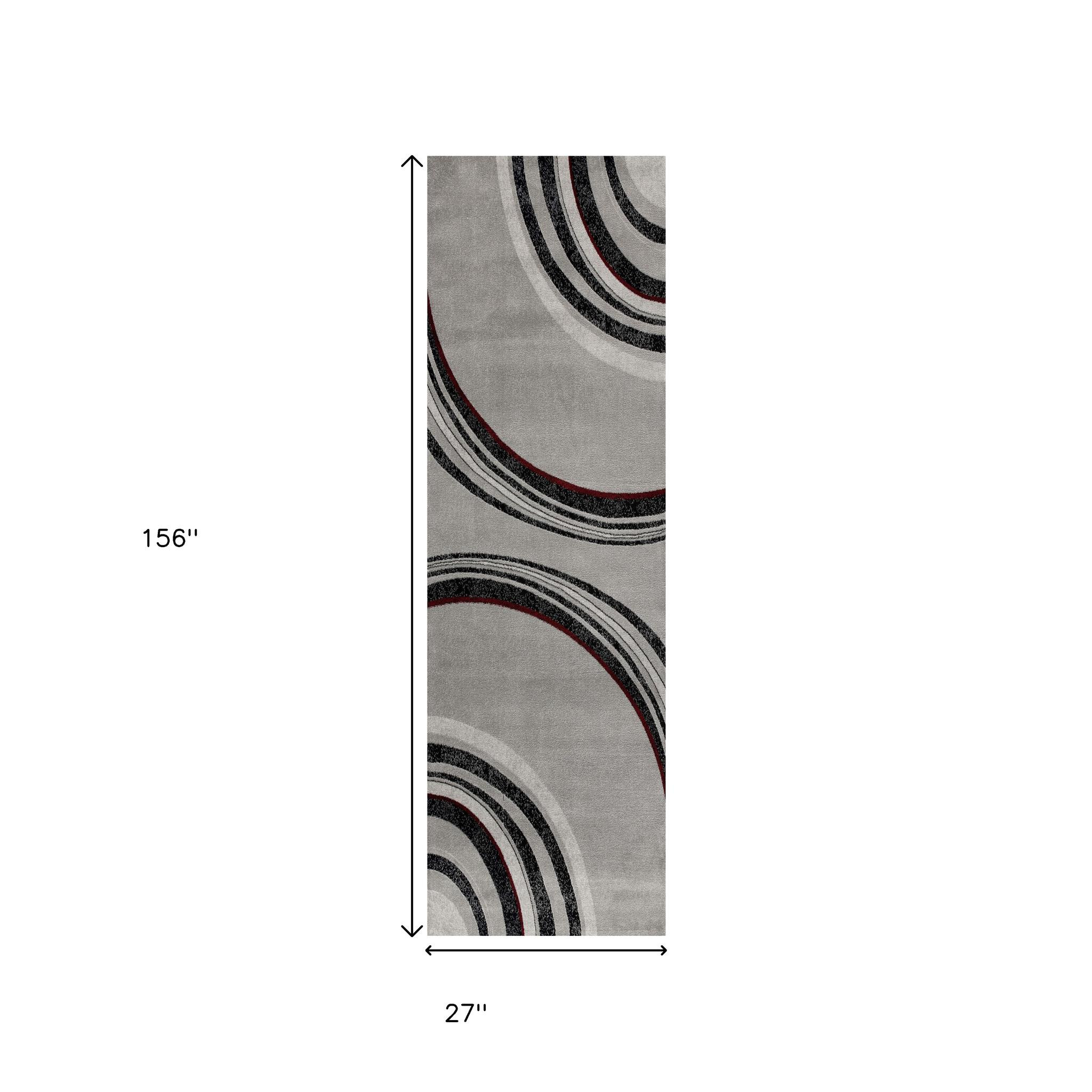 Add some artistry to your room with this 13-foot gray and black abstract shag runner rug. Built to last, this rug crafted from olefin fibers is known for its durability and long lasting appeal. Rugs are a great way to showcase your style, hide imperfections, warm your home and reduce noise. This rectangular shaped rug features a abstract design that will add a functional and decorative accent to your space. The retro shag construction of this luxurious rug will provide a soft and comfortable barrier to color tile and hardwood floors. This modern style runner makes a great accent for the hallway, in front of cabinets, in the laundry room, or any other space you need a narrow and long rug. 27-inch h x 156-inch w x 0.8-inch d.