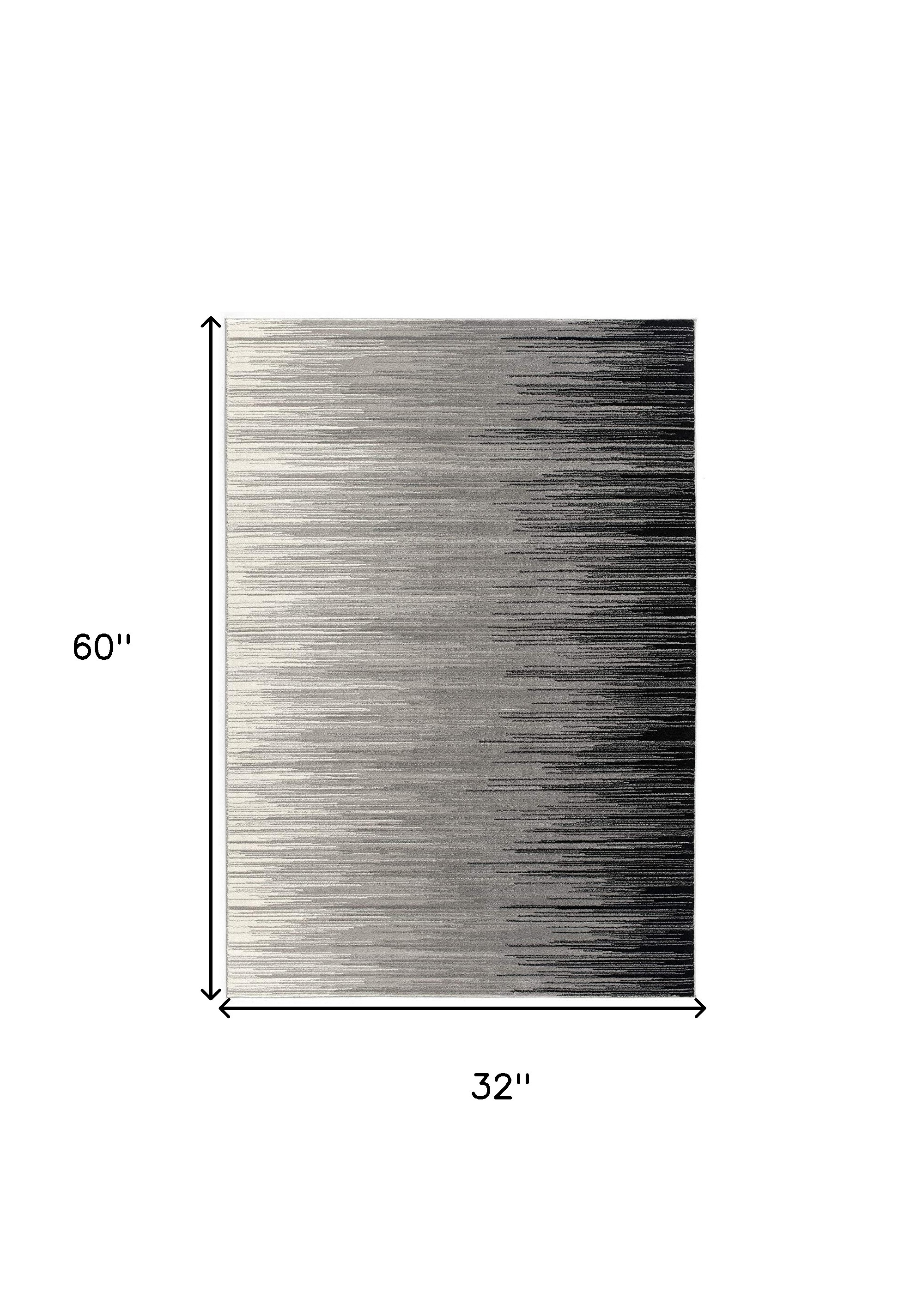 Add some artistry to your room with this 3-foot x 5-foot black and gray striped area rug. Ideal for spaces with kids and pets, this rug is stain resistant to help repel dirt and spilled liquids. Built to last, this rug crafted from olefin fibers is known for its durability and long lasting appeal. Rugs are a great way to showcase your style, hide imperfections, warm your home and reduce noise. This smaller sized, modern styled rug is just what you need for your walkway, bedside, in front of door, cabinet, refrigerator, or chair. 32-inch h x 60-inch w x 0.8-inch d.