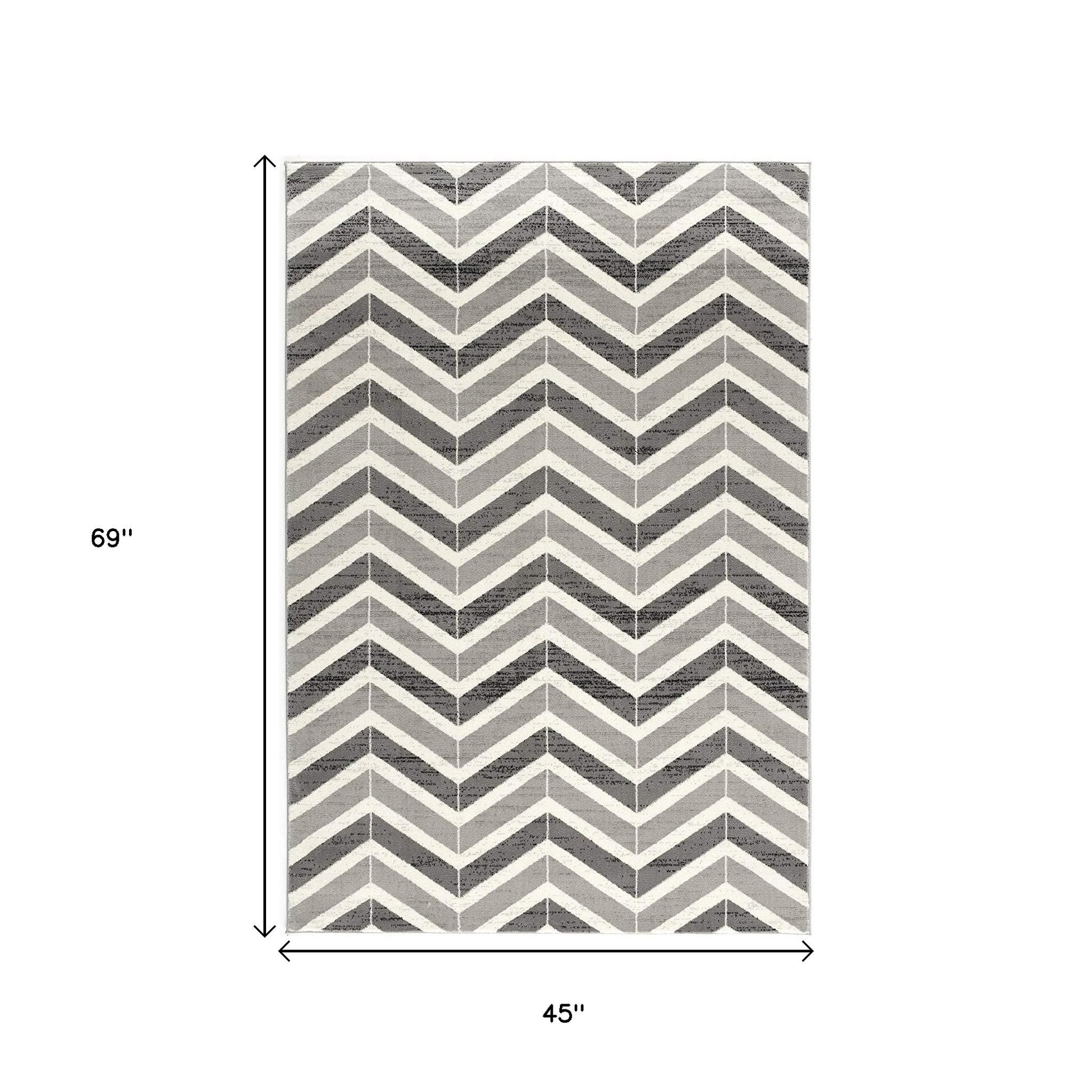 Add great coloration and comfortable texture to your space with this 4' x 6' gray chevron power loom area rug. This rectangle shaped rug features a chevron design in gray to give it visual interest. A classic shape marries with good looking design for your space This superior Turkish rug represents the highest quality and is built to last. Area Rugs help to give warmth and sense of home to your space. 0.8" H x 45" W x 69" D
