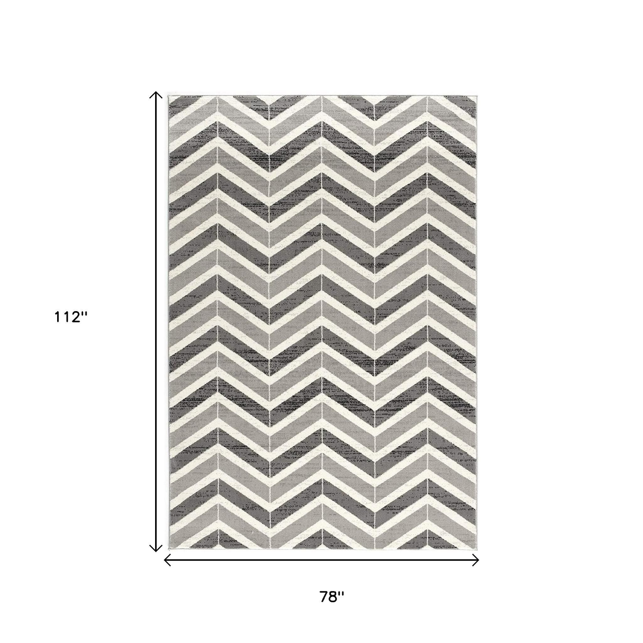 This 7' x 9' gray chevron dhurrie area rug, is a great way to add warmth to a room. This rectangle shaped rug features a chevron design in gray to give it visual interest. A classic shape marries with good looking design for your space Made in Turkey, this rug offers high quality combined with good looking designer sensibilities. Place this area rug against a hardwood or tile floor and it will enliven your living space with style and sophistication. 0.8" H x 78" W x 112" D