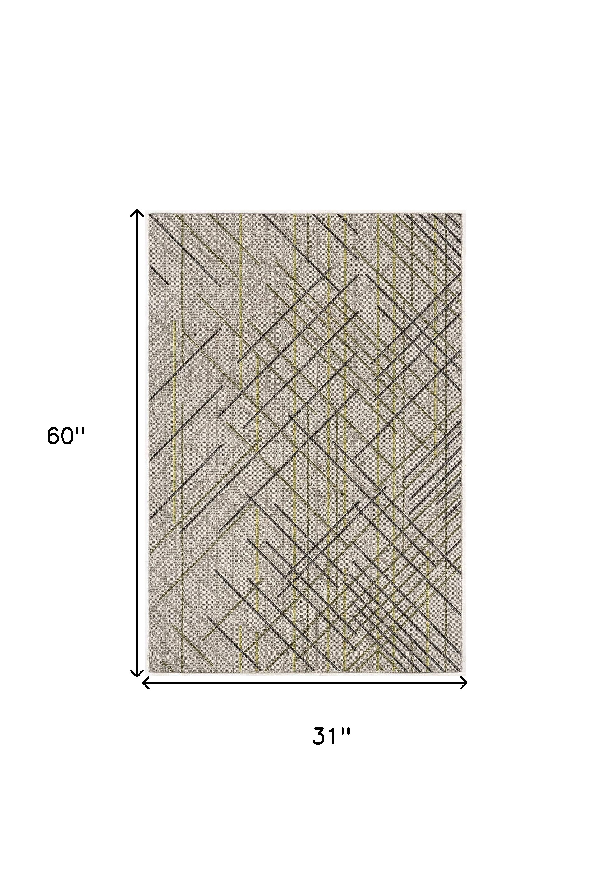 Characterized by geometric patterns in a subtle color palette, this Sage Abstract Linework Area Rug will be an ideal piece of décor for your contemporary living space. The soft sage background highlights the crisp angular linework in deep gray and olive tones, creating a masterpiece that will stand out in your living room. Flaunting the skillful craftsmanship of Turkish artisans, this rug is made of 100% polypropylene fibers to ensure optimum durability against wear and tear while resisting stains to retain the shine. Easy to clean and maintain, the low pile offers a smooth underfoot that’s stays put on the ground and covers the floor with a cozy layer. Whether you place it against a hardwood or tile floor, this area rug will add a sense of character to your home. 60” x 31” x 0.3”