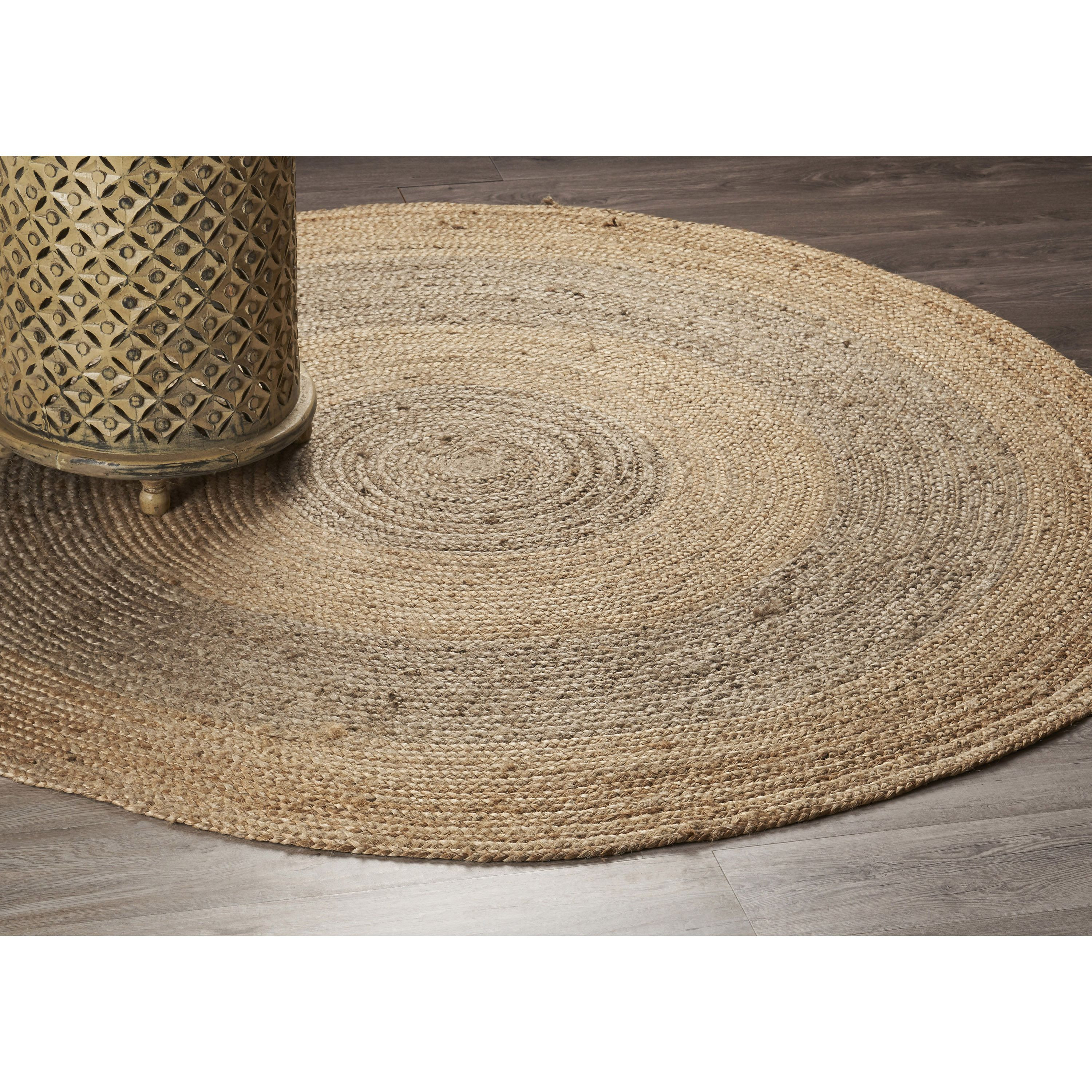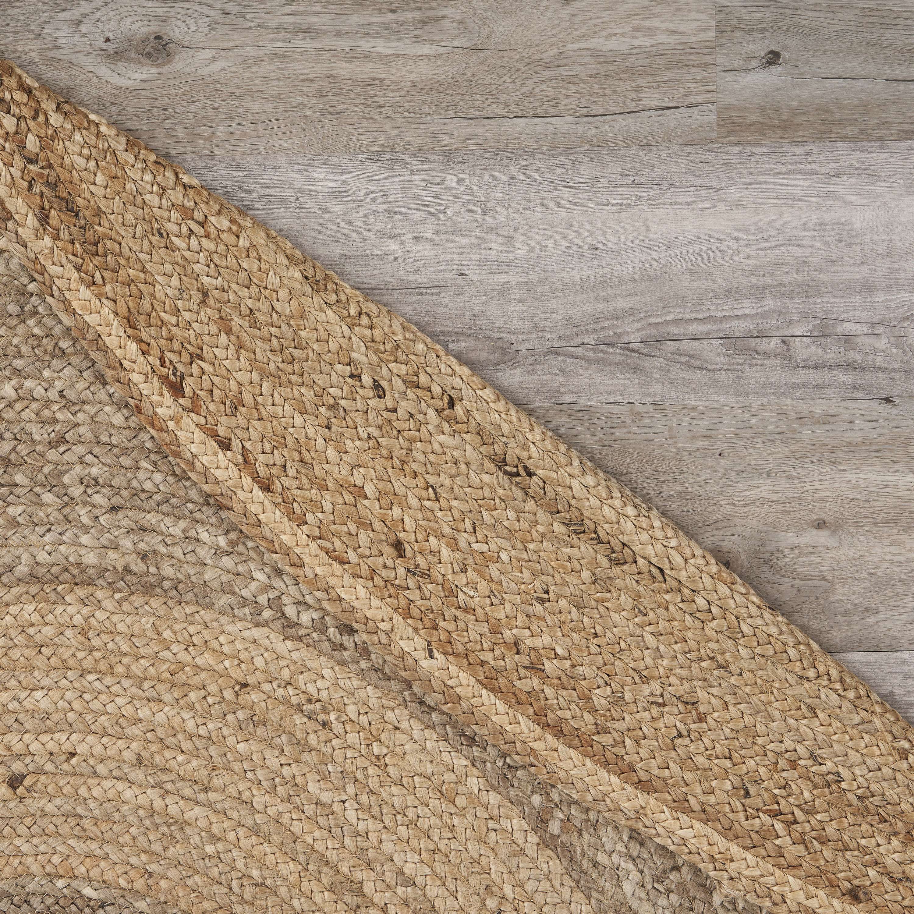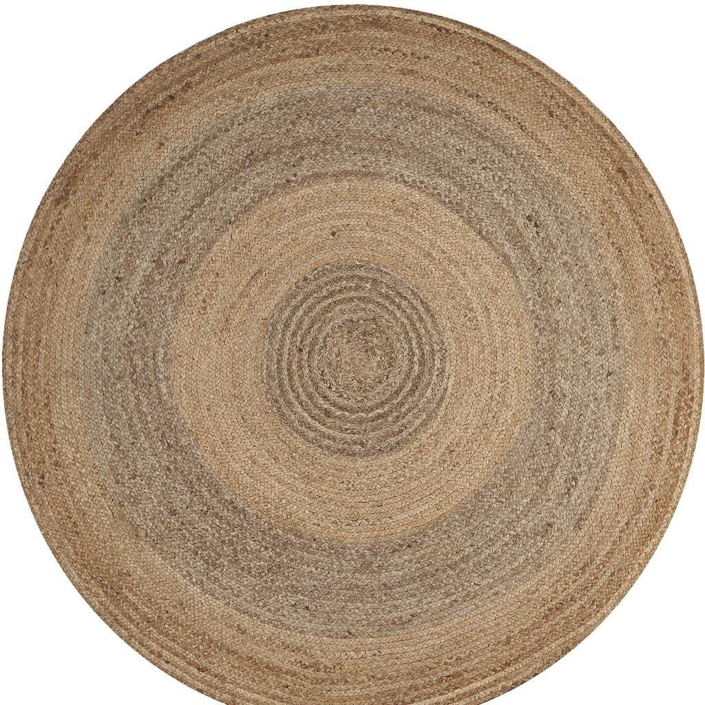 Add great coloration and comfortable texture to your space with this 8-foot natural jute striped hand braided round rug. Crafted from jute fibers that give this piece premium texture, refinement, and appeal. This larger sized, transitional styled rug is ready to create a focal point or statement piece in your room. 90.00-inch h x 90.00-inch w x 0.50-inch d.