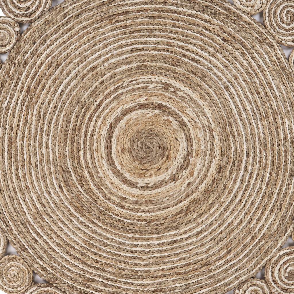 This 6-foot beige jute hand braided round rug, is a great way to add warmth to a room. Crafted from jute fibers that give this piece premium texture, refinement, and appeal. Rugs are a great way to showcase your style, hide imperfections, warm your home and reduce noise. This larger sized, transitional styled rug is ready to create a focal point or statement piece in your room. 72-inch h x 72-inch w x 0.5-inch d.