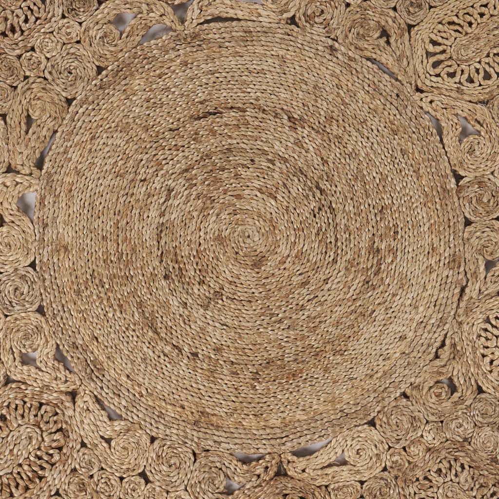 Set an inviting tone in your space with this 8-foot natural jute hand braided round rug. Crafted from jute fibers that give this piece premium texture, refinement, and appeal. Rugs are a great way to showcase your style, hide imperfections, warm your home and reduce noise. This larger sized, classic styled rug is ready to create a focal point or statement piece in your room. 90-inch h x 90-inch w x 0.5-inch d.