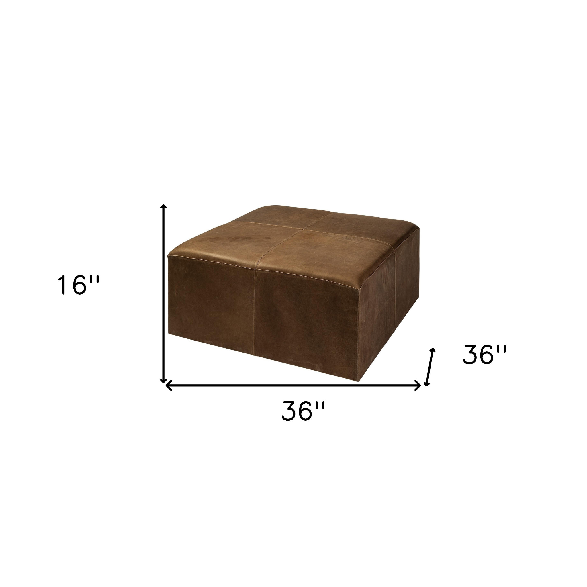 Add a good looking decorative accent to your space that is also practical for seating. Add chic style to your space with this fun cube that not only looks cool but can be a great foot rest or extra seat when needed. The brown upholstery top of this ottoman is a nice contrast to the high quality, manufactured wood of the base. Easy to blend into most any room, a ottoman is a way to add a good looking accent to your space that can also be practical and useful. 16-inch h x 36-inch w x 36-inch d.