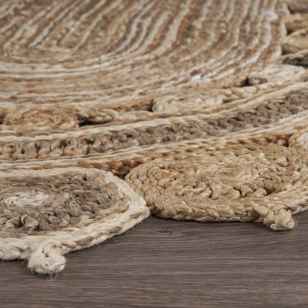 Add great coloration and comfortable texture to your space with this 5-foot x 7-foot natural jute hand braided oval rug. Crafted from jute fibers that give this piece premium texture, refinement, and appeal. Rugs are a great way to showcase your style, hide imperfections, warm your home and reduce noise. This larger sized, modern styled rug is ready to create a focal point or statement piece in your room. 84-inch h x 84-inch w x 0.5-inch d.