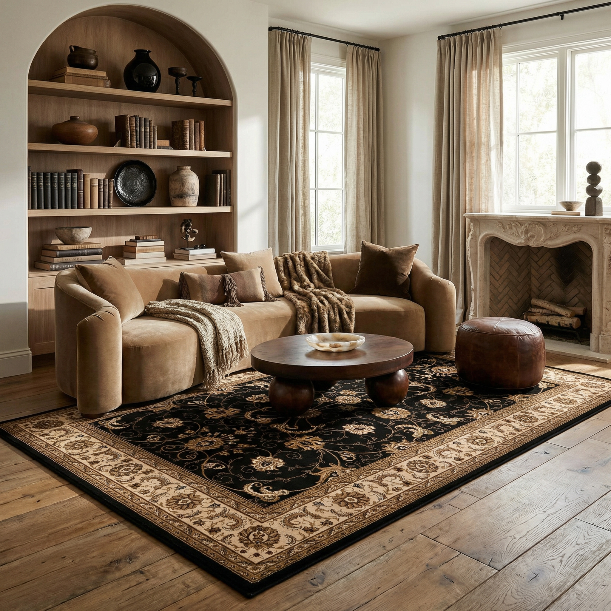 Add great coloration and comfortable texture to your space with this 4-foot x 6-foot black and ivory oriental area rug. Built to last, this rug crafted from olefin fibers is known for its durability and long lasting appeal. Rugs are a great way to showcase your style, hide imperfections, warm your home and reduce noise. This smaller sized, transitional styled rug is just what you need for your walkway, bedside, in front of door, cabinet, refrigerator, or chair. 45-inch h x 66-inch w x 0.6-inch d.
