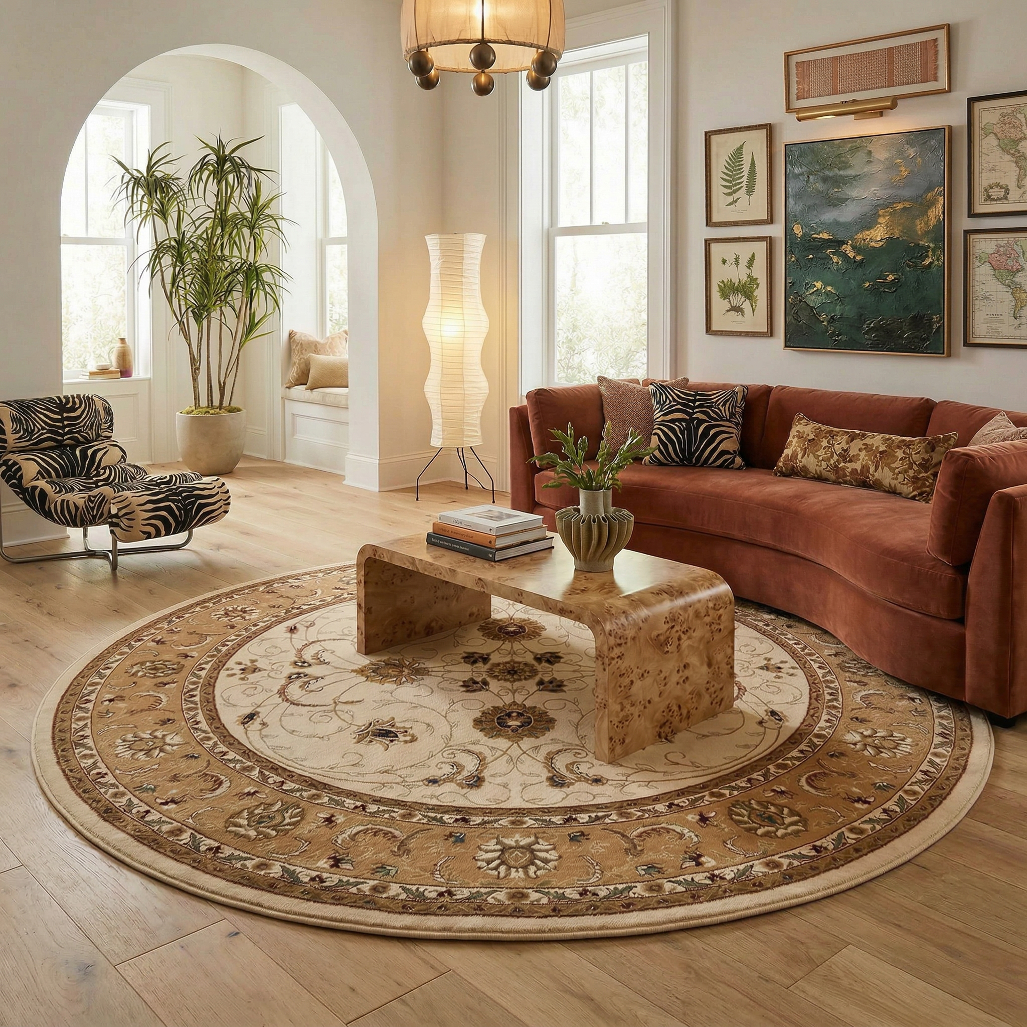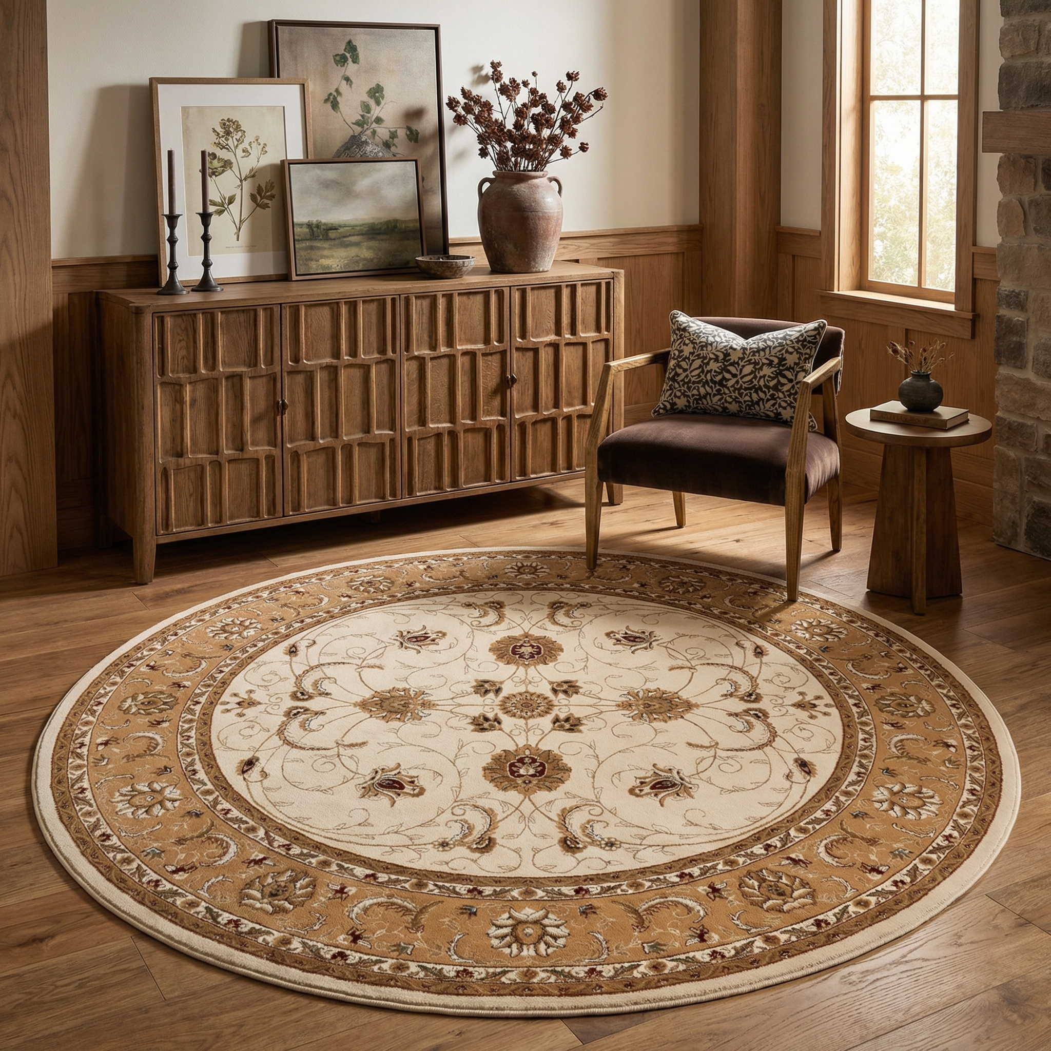 tan ornate border area rug, ornate border area rug, border area rug, cream tan ornate border area, round cream tan ornate border |