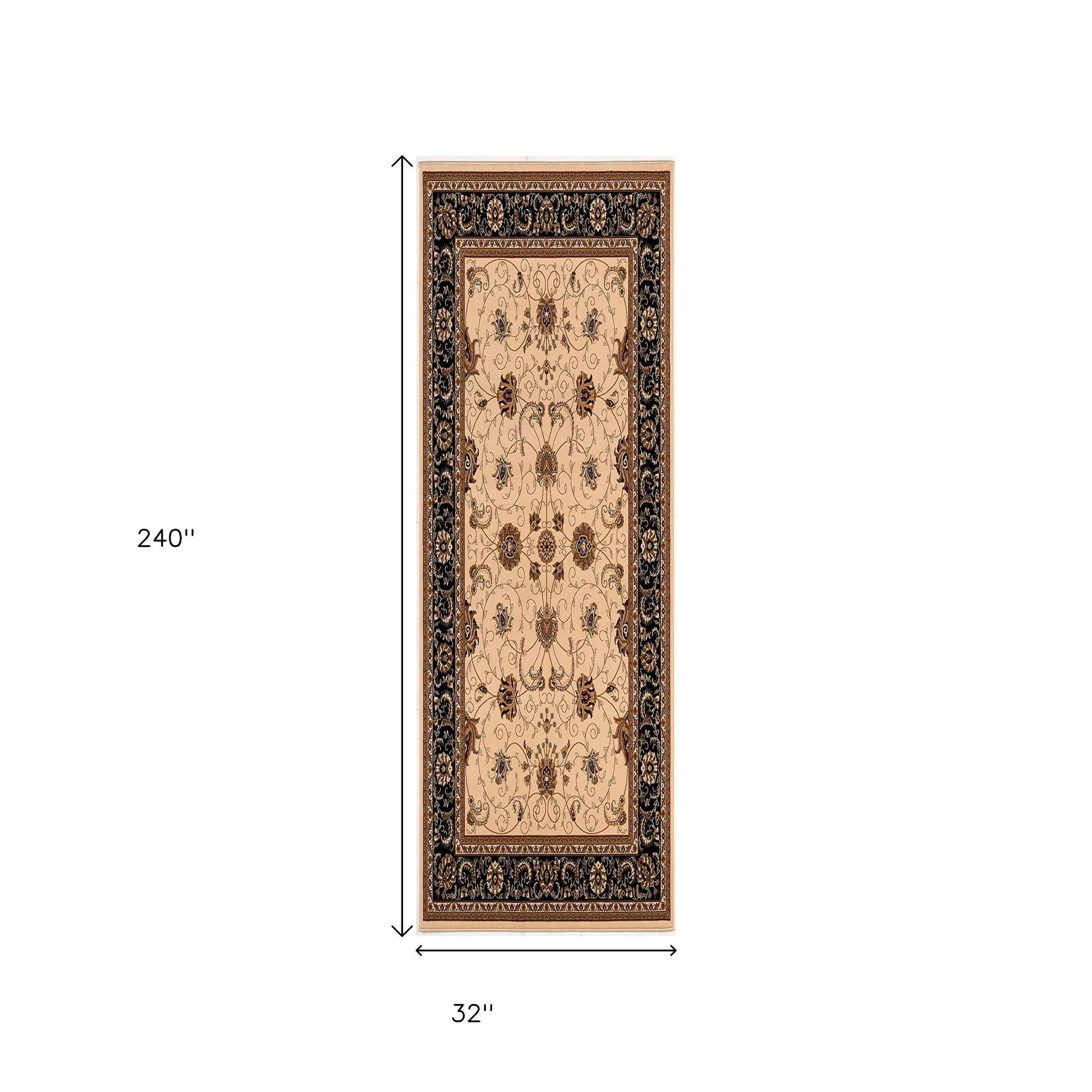 This 20-foot black and ivory oriental runner rug, is a great way to add warmth to a room. Built to last, this rug crafted from olefin fibers is known for its durability and long lasting appeal. Rugs are a great way to showcase your style, hide imperfections, warm your home and reduce noise. This rectangular shaped rug features a abstract design that will add a functional and decorative accent to your space. This transitional style runner makes a great accent for the hallway, in front of cabinets, in the laundry room, or any other space you need a narrow and long rug. 32-inch h x 240-inch w x 0.6-inch d.