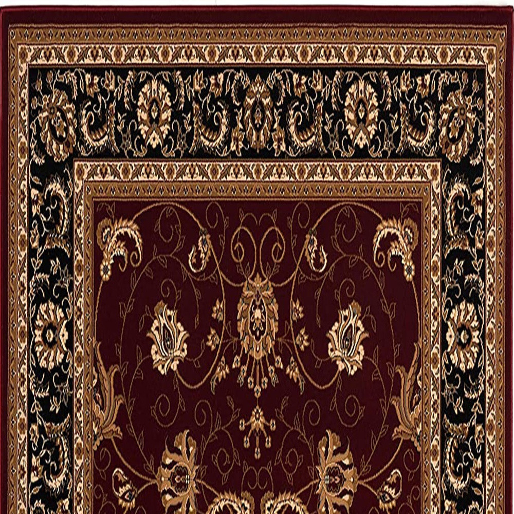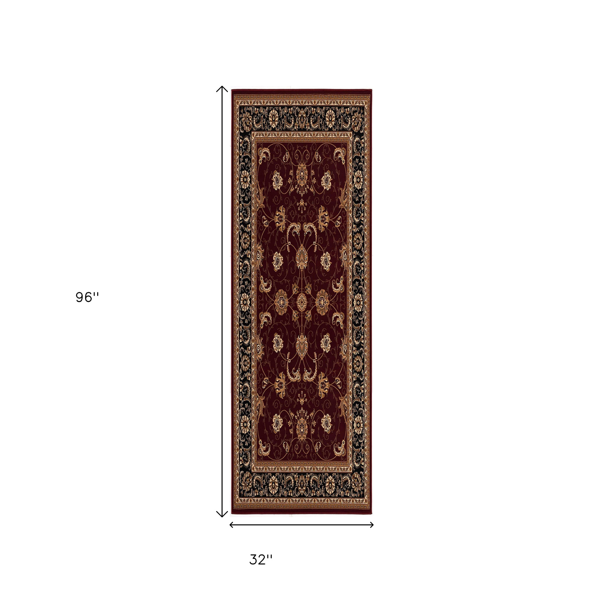 Set an inviting tone in your space with this 8-foot red and black oriental runner rug. Built to last, this rug crafted from olefin fibers is known for its durability and long lasting appeal. Rugs are a great way to showcase your style, hide imperfections, warm your home and reduce noise. This rectangular shaped rug features a abstract design that will add a functional and decorative accent to your space. This transitional style runner makes a great accent for the hallway, in front of cabinets, in the laundry room, or any other space you need a narrow and long rug. 32-inch h x 96-inch w x 0.6-inch d.