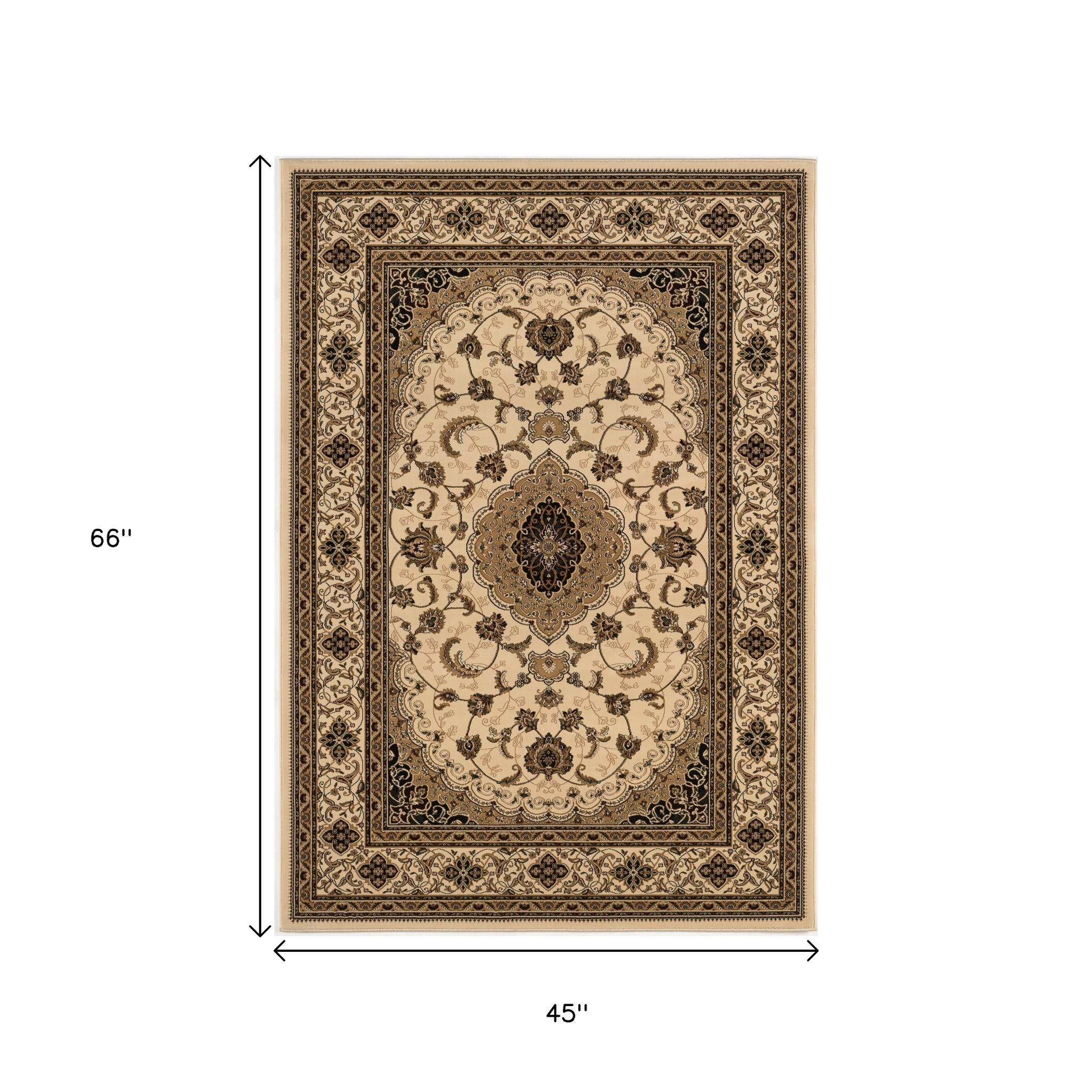 Add great coloration and comfortable texture to your space with this 4-foot x 6-foot beige and black floral medallion power loom area rug. This rectangle shaped rug features a floral medallion design in beige and black to give it visual interest. A classic shape marries with good looking design for your space place this area rug against a hardwood or tile floor and it will enliven your living space with style and sophistication. 45-inch H x 66-inch W x 0.6-inch D