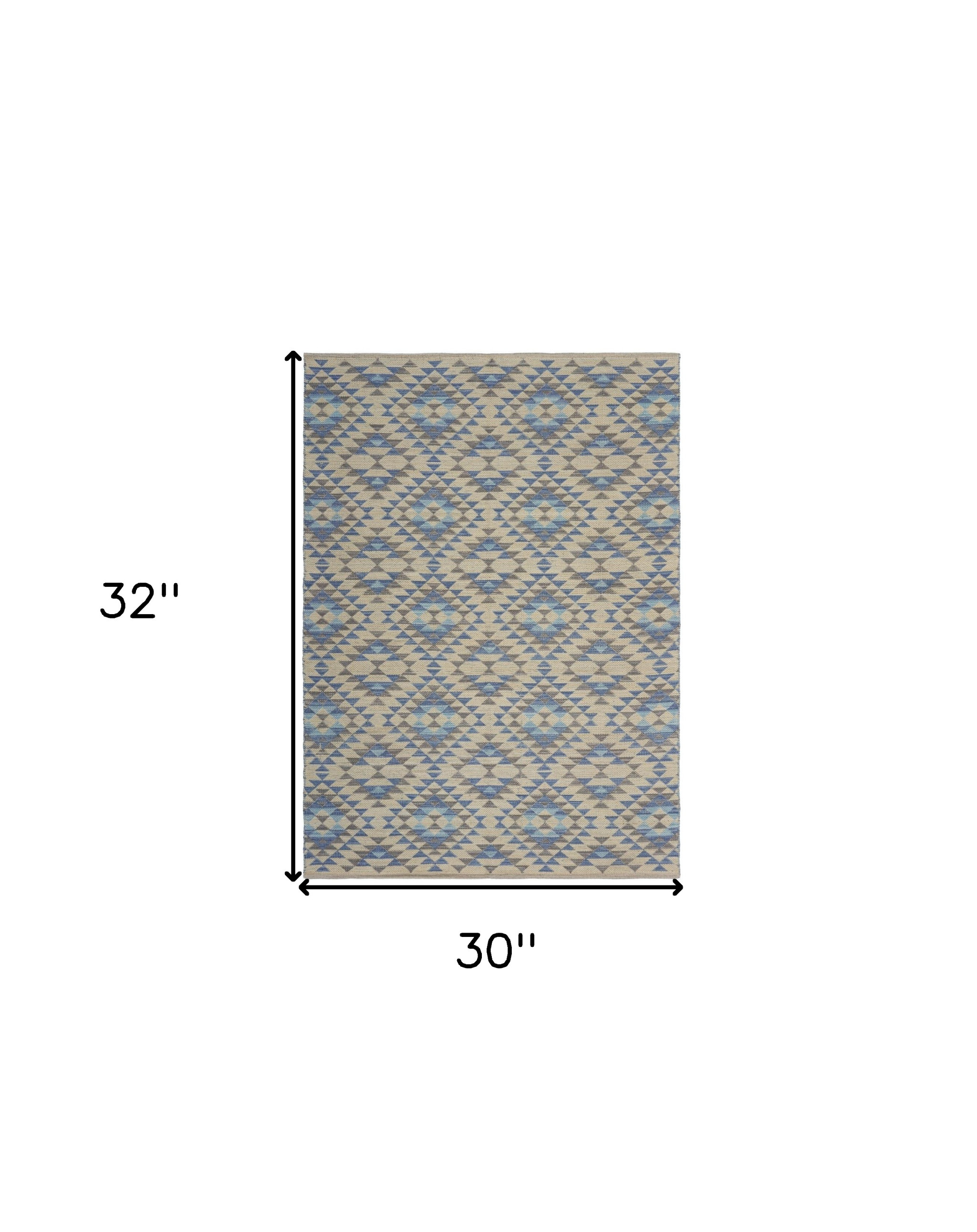 Packed with patterns and colors to allure the gaze of the guest, this Blue Decorative Lattice Area Rug will be a stunning accent to adorn your contemporary interior. Flaunting the eclectic shades of blues and beige to create decorative lattice patterns for visual harmony. Made of cotton and polyester blend to ensure durability and retain color intensity for years while being easy to clean. The flatweave construction adds to a smooth and soft surface texture making it an ideal choice for indoor areas with heavy foot traffic. Upholding a classy look with a touch of bohemian flair, this versatile area rug will be a worthy addition to induce an inviting ambiance into your place. 30” x 32” x 0.3”