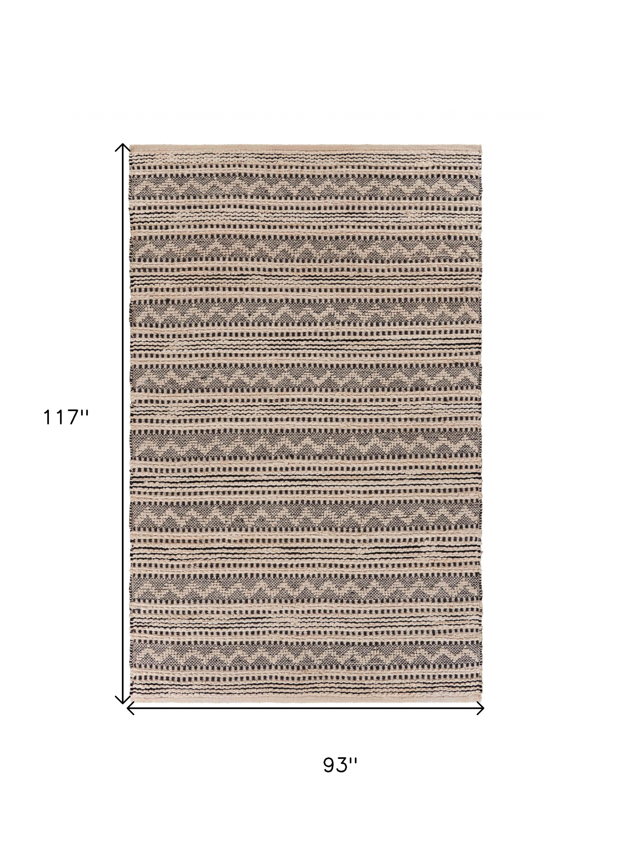 The pleasing combination of this Black and Blush Chevron Striped Area Rug embraces a traditional vibe with a modern twist. Merging blush pink and black into the intricacy of alternate chevron and striped patterns, this rug stands out as a timeless piece. This rug s hand-loomed with jute and rayon blend making this piece soft yet durable enough to last long while preventing dirt from building up, keeping it neat and clean all the time. An ideal option for most homes, this rug is constructed in a medium pile for a cozy and cushiony underfoot giving you an inviting and laid-back feel on the floor. The subtle palette and soothing patterns make this area rug an alluring accent to blend in with modern, bohemian, traditional, or farmhouse-style interior decors. 93” x 117” x 0.5”