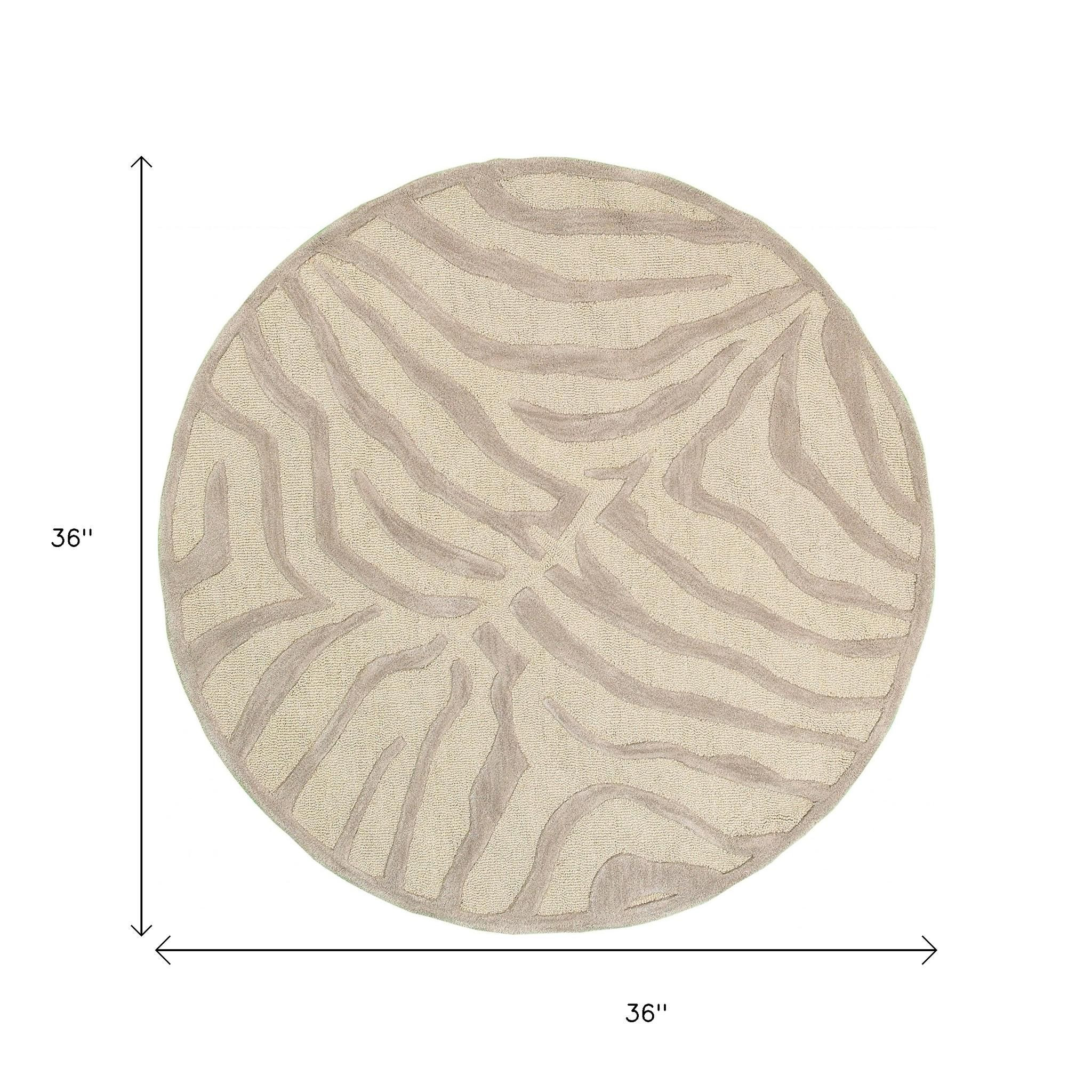 Wrapping up the playful animal patterns in the subtle shades of neutrals, this Round Taupe Zebra Pattern Area Rug is a fusion of fun and flair. The soft shades of taupe fashioned in the zebra patterns are easy on the eyes with a harmonizing feel that will blend in with any casual or contemporary setting. Made with dedication, this rug is skillfully hand-tufted with 100% wool contributing to its sustainability and stain resistance. The medium pile construction adds a layer of depth to the surface, making it soft and suitable for your bedroom, living room, foyer, or play area. Combining a modern color palette with an animal-inspired pattern, this area will elevate your living space and give your interior a stylish update. 36”