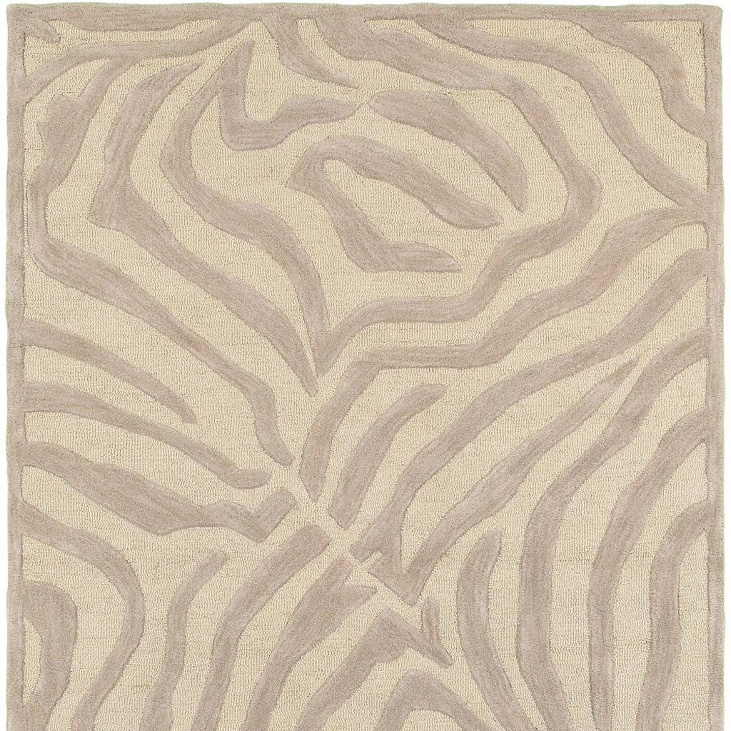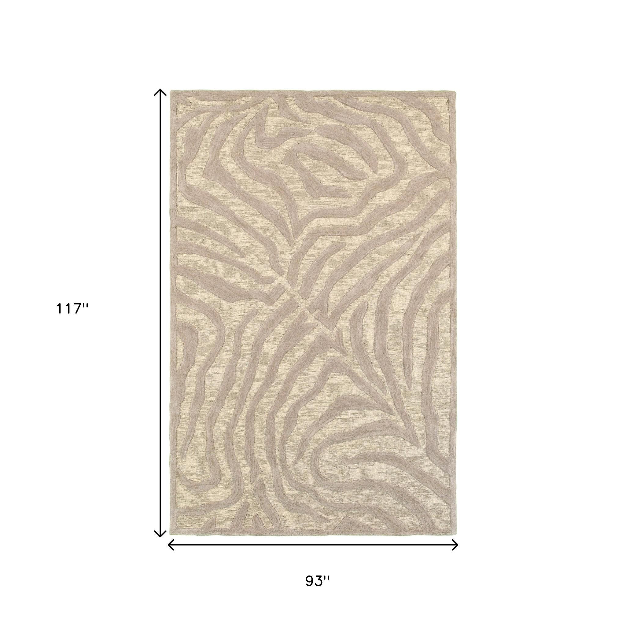 Wrapping up the playful animal patterns in the subtle shades of neutrals, this Taupe Zebra Pattern Area Rug is a fusion of fun and flair. The soft shades of taupe fashioned in the zebra patterns are easy on the eyes with a harmonizing feel that will blend in with any casual or contemporary setting. Made with dedication, this rug is skillfully hand-tufted with 100% wool contributing to its sustainability and stain resistance. The medium pile construction adds a layer of depth to the surface, making it soft and suitable for your bedroom, living room, foyer, or play area. Combining a modern color palette with an animal-inspired pattern, this area will elevate your living space and give your interior a stylish update. 93” x 117" x 0.5"