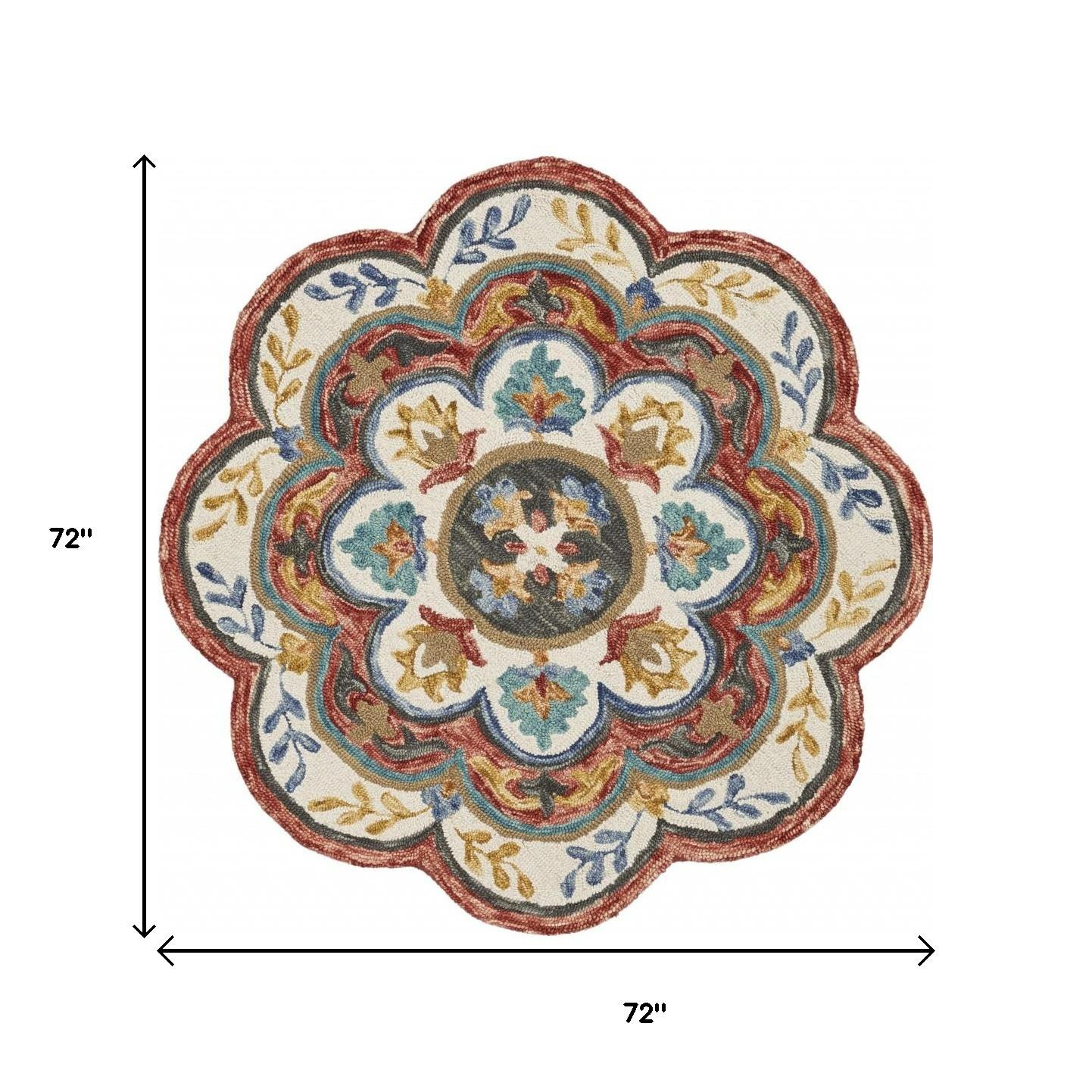 This 6-foot red wool hand hooked round rug, is a great way to add warmth to a room. Crafted by skilled artisans, this hand hooked rug is genuine and unique. No two will be exactly alike. Rugs are a great way to showcase your style, hide imperfections, warm your home and reduce noise. This larger sized, modern styled rug is ready to create a focal point or statement piece in your room. 72-inch h x 72-inch w x 0.5-inch d.