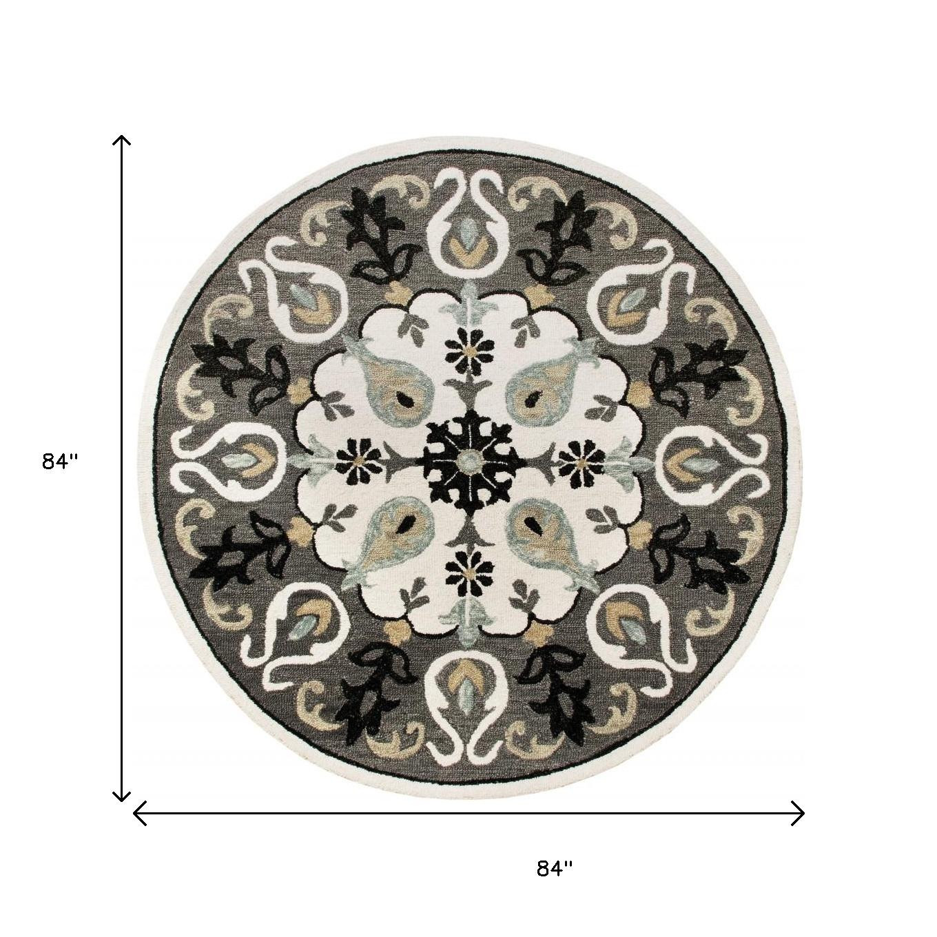 white floral medallion area rug, floral medallion area rug, medallion area rug, gray white floral medallion area, round gray white floral |