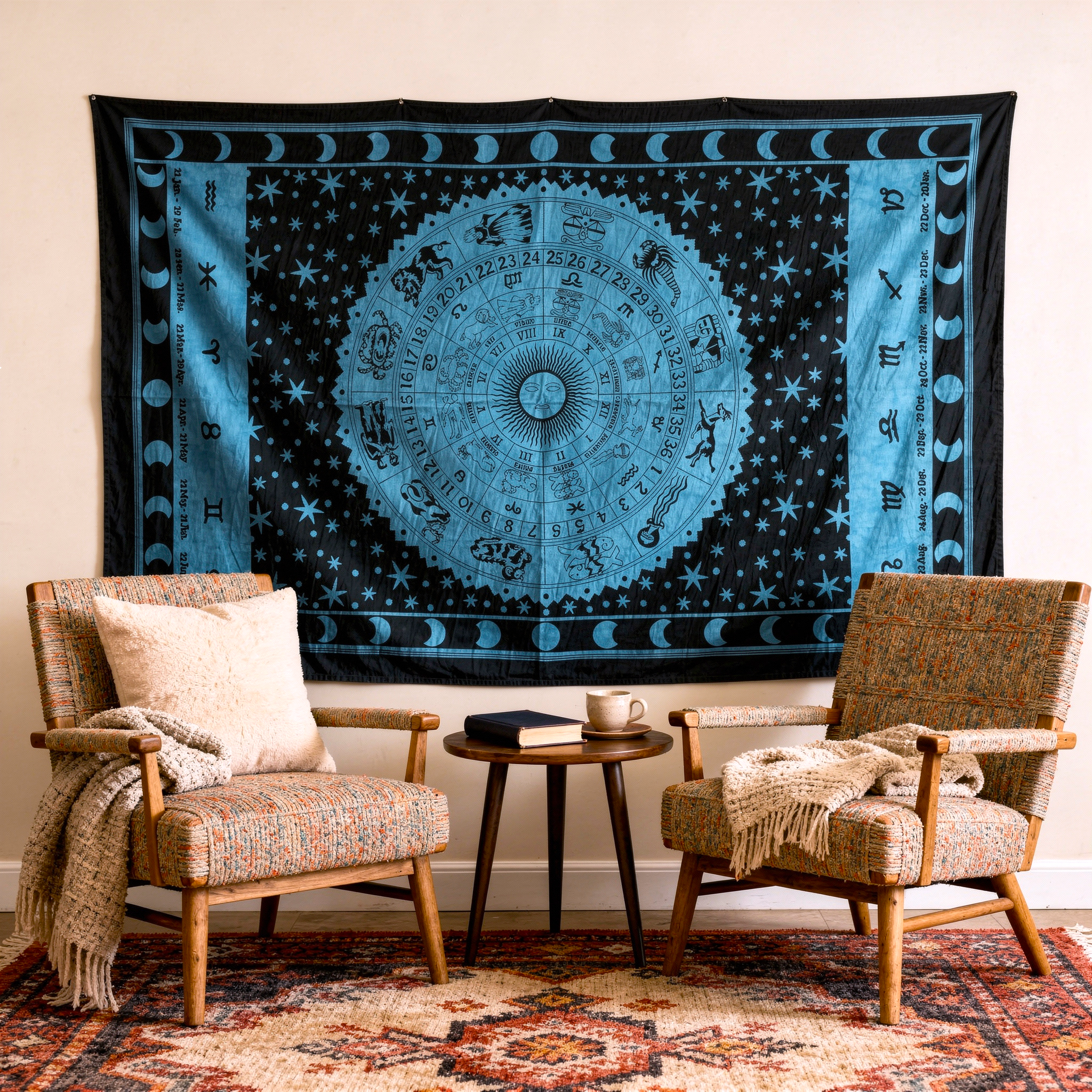 cotton hanging tapestry, blue cotton hanging tapestry, black blue cotton hanging tapestry, 80" X 56" black blue cotton hanging, blue cotton hanging |