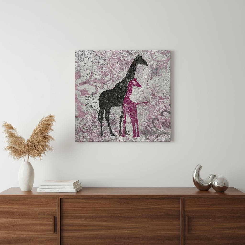 Bring some sizzle to your space with this eye-catching exotic pink giraffes unframed print wall art. This print is a visual artistic expression that allows you to decorate your space in style. Reproduced for you on canvas, this hanging decorative accent will be a trendy and fashionable way to dress your walls. Adding this hanging wall art to your space to make your room feel more finished and attractive. Utilize this opportunity to create a focal point in the room with this fabulous wall decor option. 30 inches H x 30 inches W x 1.25 inches D