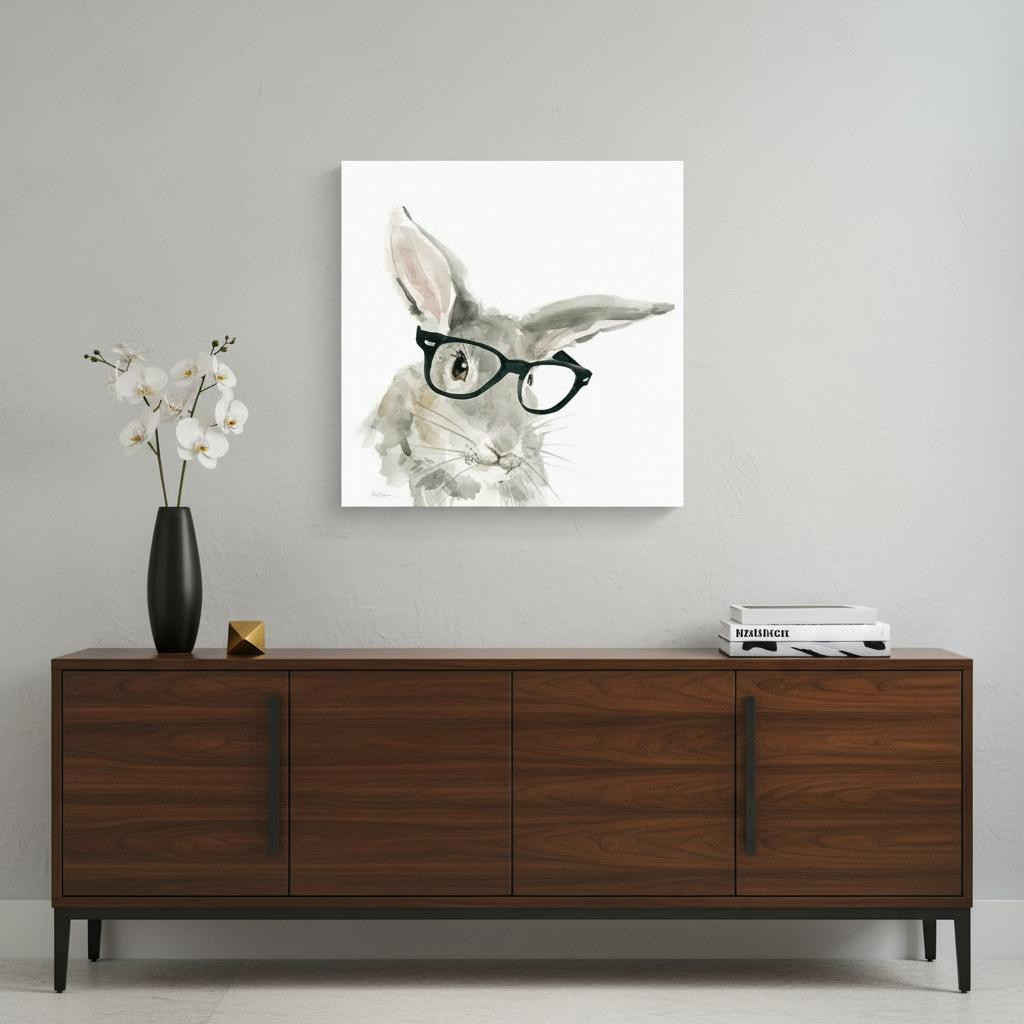 This 30 inches x 30 inches watercolor cutie rabbit in glasses canvas wall art will add a beautiful decorative accent to your decor. This print is a visual artistic expression that allows you to decorate your space in style. Reproduced for you on canvas, this hanging decorative accent will be a trendy and fashionable way to dress your walls. Hang on your wall to add some up to date fashion and decoration. Instantly liven up your space with this art that brings color and dimension to your walls. 30 inches H x 30 inches W x 1.25 inches D