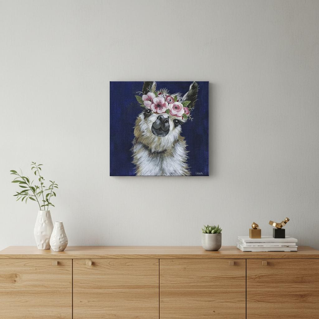 This watercolor flower llama unframed print wall art will add a beautiful decorative accent to your decor. This print is a visual artistic expression that allows you to decorate your space in style. Reproduced for you on canvas, this hanging decorative accent will be a trendy and fashionable way to dress your walls. Hang on your wall to add some up to date fashion and decoration. Utilize this opportunity to create a focal point in the room with this fabulous wall decor option. 30 inches H x 30 inches W x 1.25 inches D