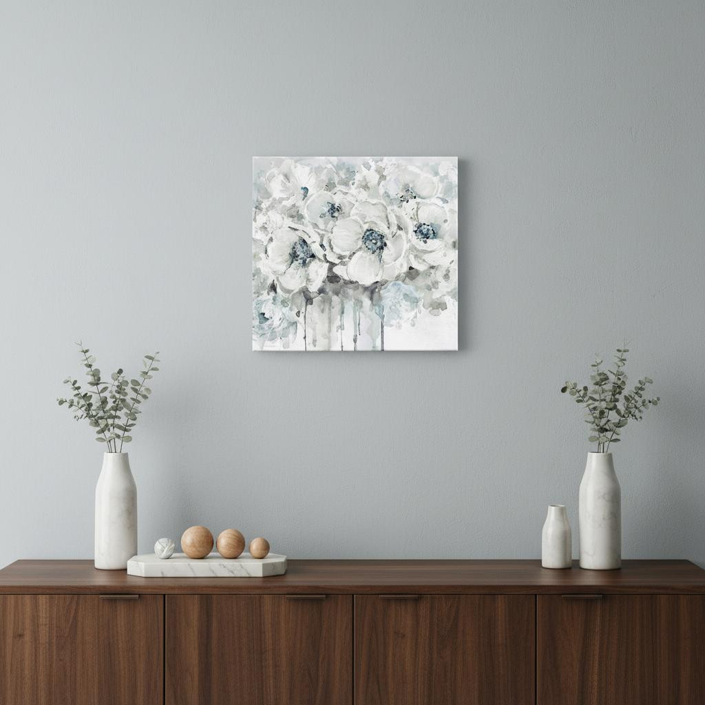 Bring some sizzle to your space with this eye-catching winter blues flower unframed print wall art. This print is a visual artistic expression that allows you to decorate your space in style. Reproduced for you on canvas, this hanging decorative accent will be a trendy and fashionable way to dress your walls. Hang on your wall to add some up to date fashion and decoration. Instantly liven up your space with this art that brings color and dimension to your walls. 20 inches H x 20 inches W x 1.25 inches D
