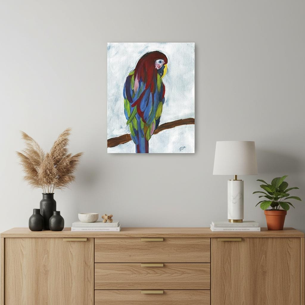 tropical parrot canvas wall art, bright tropical parrot canvas wall, parrot canvas wall art, large bright tropical parrot canvas, tropical parrot canvas wall |
