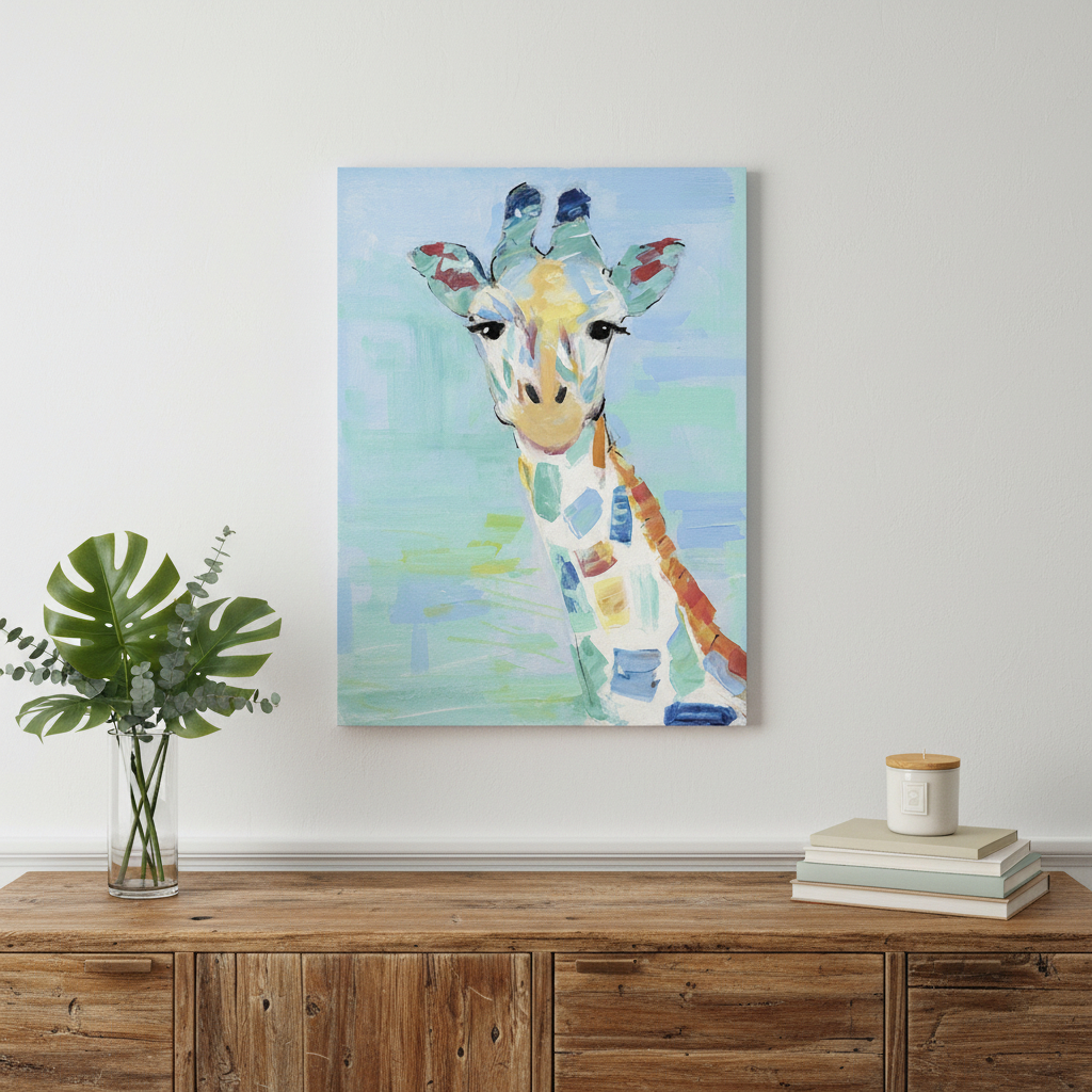 Add an air of fashion to your room and rejuvenate the space with this 24 inches x 18 inches pastel patchwork giraffe canvas wall art. This print is a visual artistic expression that allows you to decorate your space in style. Reproduced for you on canvas, this hanging decorative accent will be a trendy and fashionable way to dress your walls. Adding this hanging wall art to your space to make your room feel more finished and attractive. Instantly liven up your space with this art that brings color and dimension to your walls. 24 inches H x 18 inches W x 1.25 inches D