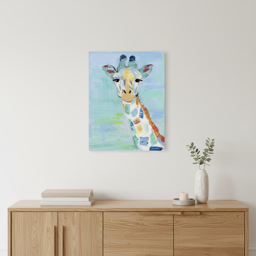 The 32 inches x 24 inches pastel patchwork giraffe canvas wall art is the perfect decorative accessory for your home. This print is a visual artistic expression that allows you to decorate your space in style. Reproduced for you on canvas, this hanging decorative accent will be a trendy and fashionable way to dress your walls. Hang on your wall to add some up to date fashion and decoration. Utilize this opportunity to create a focal point in the room with this fabulous wall decor option. 32 inches H x 24 inches W x 1.25 inches D