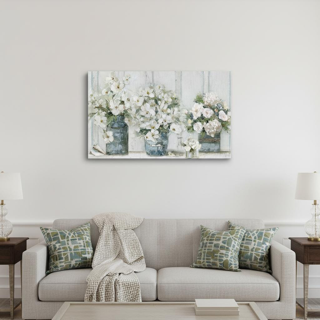 This 48 inches x 32 inches watercolor soft pastel bouquet trio canvas wall art will add a beautiful decorative accent to your decor. This print is a visual artistic expression that allows you to decorate your space in style. Reproduced for you on canvas, this hanging decorative accent will be a trendy and fashionable way to dress your walls. Hang on your wall to add some up to date fashion and decoration. Instantly liven up your space with this art that brings color and dimension to your walls. 48 inches H x 32 inches W x 1.25 inches D