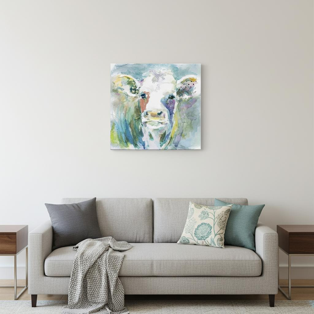 Add an air of fashion to your room and rejuvenate the space with this watercolor cow unframed print wall art. This print is a visual artistic expression that allows you to decorate your space in style. Reproduced for you on canvas, this hanging decorative accent will be a trendy and fashionable way to dress your walls. Adding this hanging wall art to your space to make your room feel more finished and attractive. Utilize this opportunity to create a focal point in the room with this fabulous wall decor option. 40 inches H x 40 inches W x 1.25 inches D