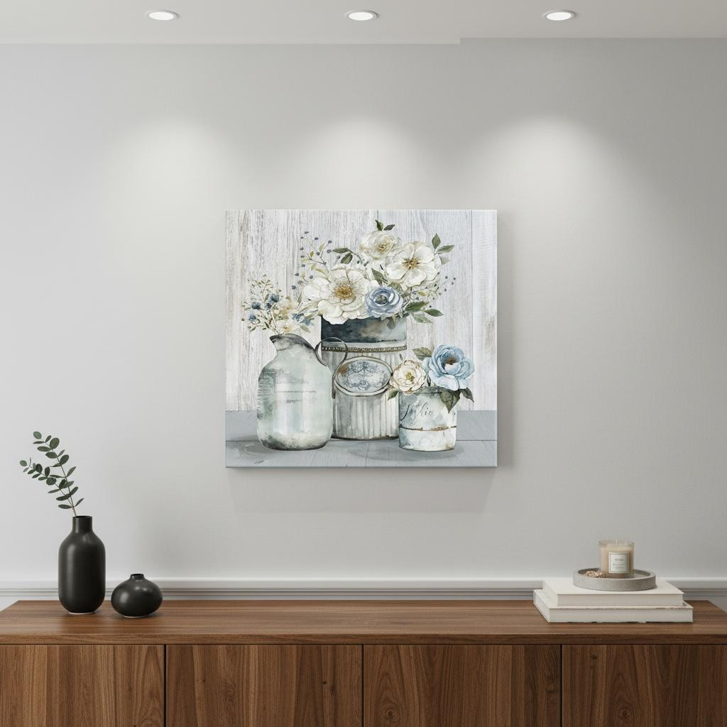 Add an air of fashion to your room and rejuvenate the space with this rustic grey flowers unframed print wall art. This print is a visual artistic expression that allows you to decorate your space in style. Reproduced for you on canvas, this hanging decorative accent will be a trendy and fashionable way to dress your walls. Hang on your wall to add some up to date fashion and decoration. Utilize this opportunity to create a focal point in the room with this fabulous wall decor option. 30 inches H x 30 inches W x 1.25 inches D