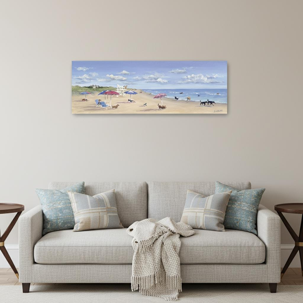 Bring some sizzle to your space with this eye-catching 60 inches x 20 inches dogs rule the beach canvas wall art. This print is a visual artistic expression that allows you to decorate your space in style. Reproduced for you on canvas, this hanging decorative accent will be a trendy and fashionable way to dress your walls. Hang on your wall to add some up to date fashion and decoration. Utilize this opportunity to create a focal point in the room with this fabulous wall decor option. 60 inches H x 20 inches W x 1.25 inches D