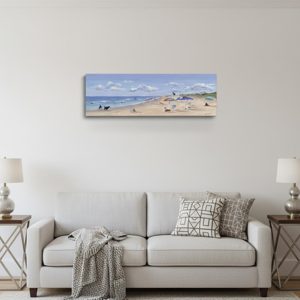 | Art Title: | Large Dogs Playing at the Beach Canvas Wall Art |