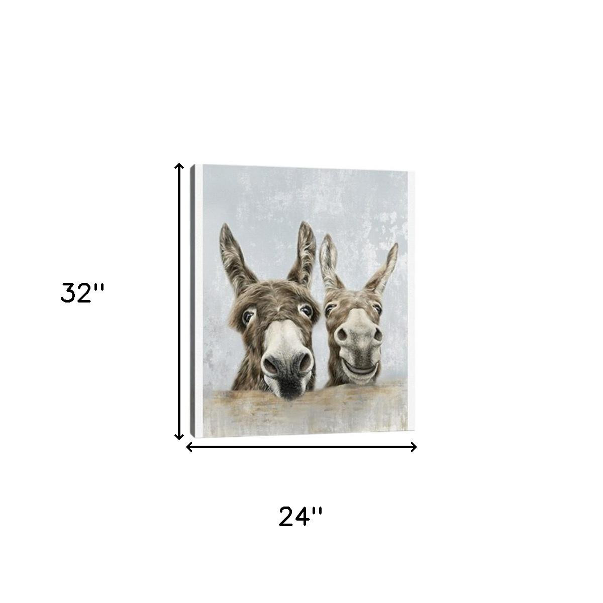 Add an air of fashion to your room and rejuvenate the space with this cute donkeys canvas unframed print wall art. This print is a visual artistic expression that allows you to decorate your space in style. Reproduced for you on canvas, this hanging decorative accent will be a trendy and fashionable way to dress your walls. Hang on your wall to add some up to date fashion and decoration. Utilize this opportunity to create a focal point in the room with this fabulous wall decor option. 32 inches H x 24 inches W x 1.25 inches D
