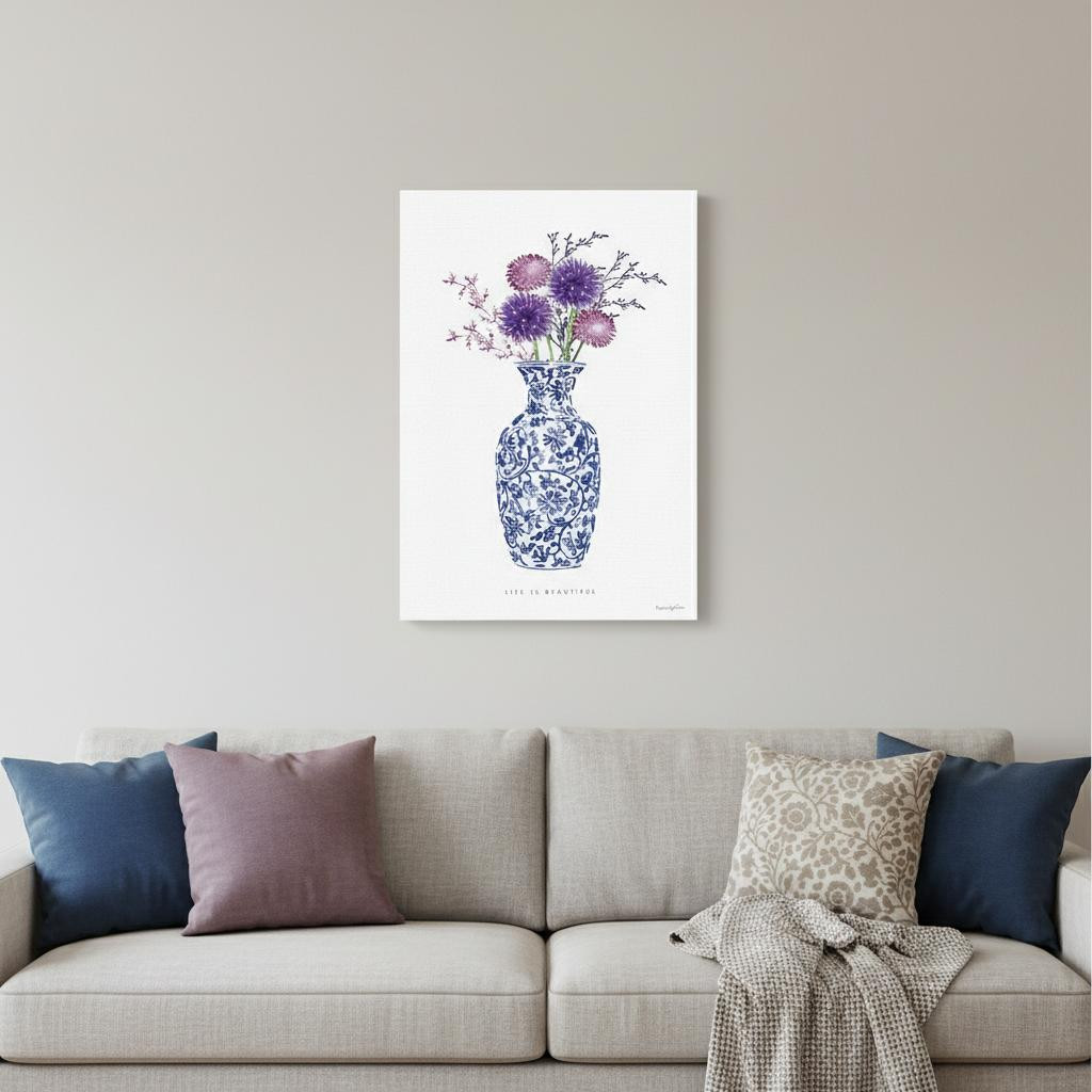The 36 inches x 24 inches blue and white life floral vase canvas wall art is the perfect decorative accessory for your home. This print is a visual artistic expression that allows you to decorate your space in style. Reproduced for you on canvas, this hanging decorative accent will be a trendy and fashionable way to dress your walls. Hang on your wall to add some up to date fashion and decoration. Instantly liven up your space with this art that brings color and dimension to your walls. 36 inches H x 24 inches W x 1.25 inches D