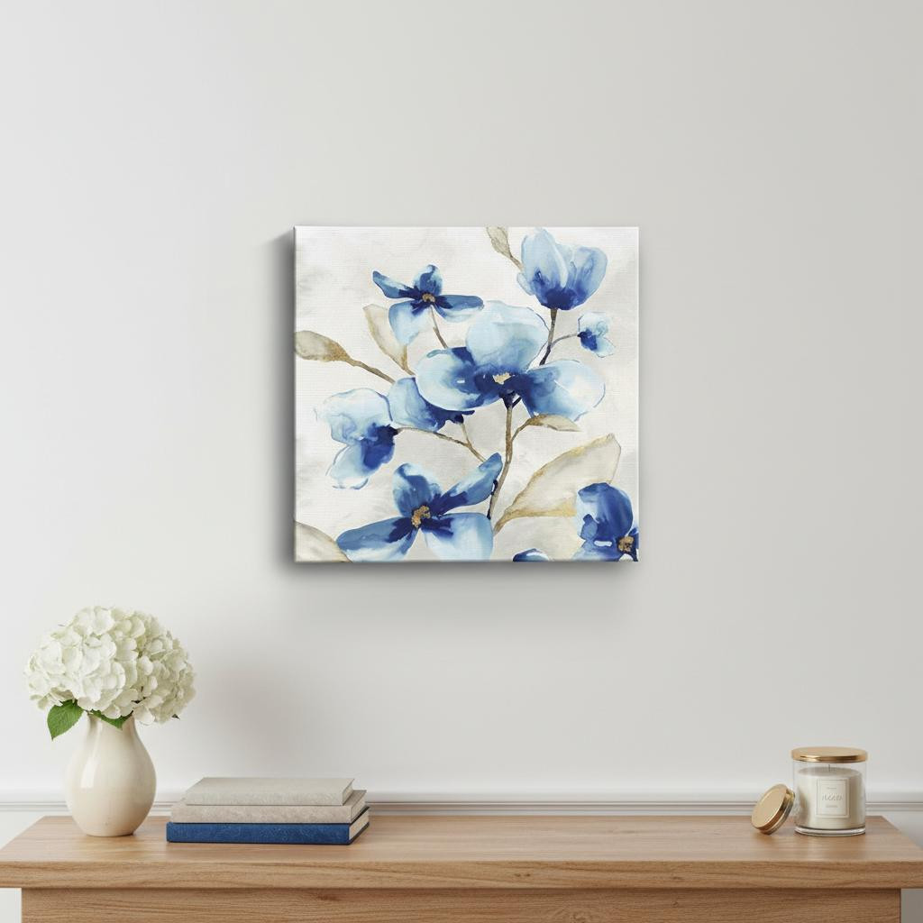 Unique and decorative, this 30 inches x 30 inches watercolor shades of blue floral canvas wall art will leave a lasting impression. This print is a visual artistic expression that allows you to decorate your space in style. Reproduced for you on canvas, this hanging decorative accent will be a trendy and fashionable way to dress your walls. Hang on your wall to add some up to date fashion and decoration. Utilize this opportunity to create a focal point in the room with this fabulous wall decor option. 30 inches H x 30 inches W x 1.25 inches D