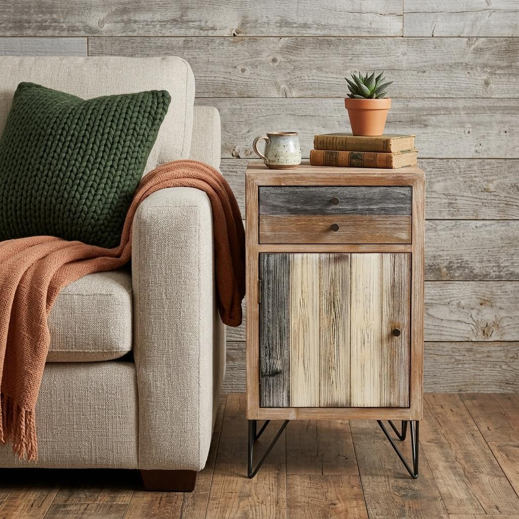 Distinctive in style the 32-inch brown wood end table radiates a versatile charm. An ideal location for placing your snacks and drinks, and a place to keep your lamp, frames, or other accessories. You can also use it as an entryway table to hold your keys. 32.00-inch h x 27.50-inch w x 13.75-inch d.