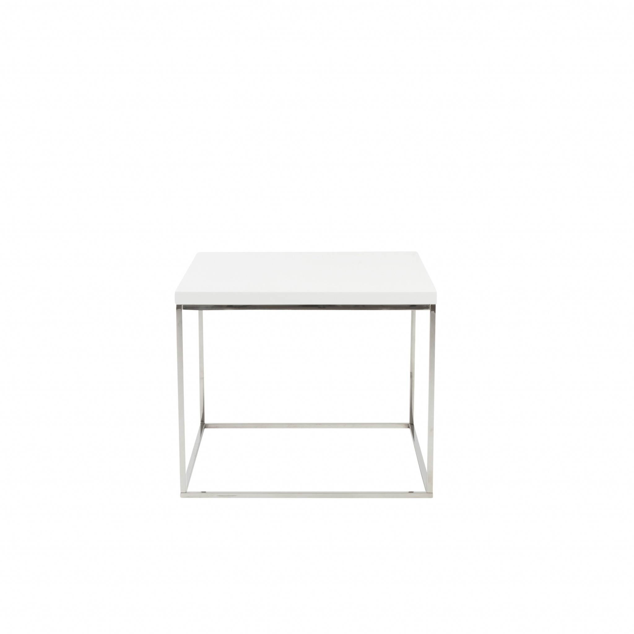 Show off your exquisite taste with this 20-inch silver and white square end table. The silver coloration of the high quality metal base marries nicely with the white manufactured wood top. A great accent on either side of the sofa or bed, this adorable end or side table is just what you need. This versatile table is a great accent for most any room. 19.69-inch H x 23.63-inch W x 23.63-inch D