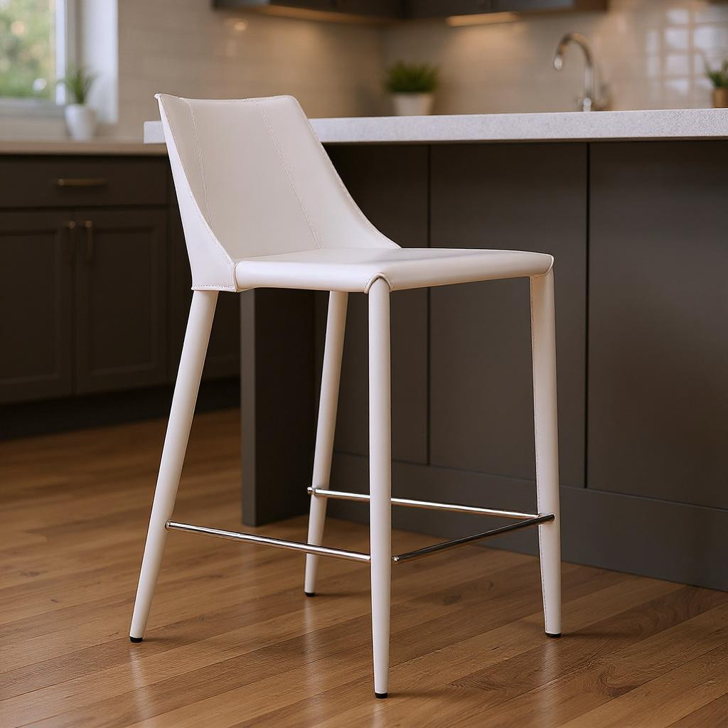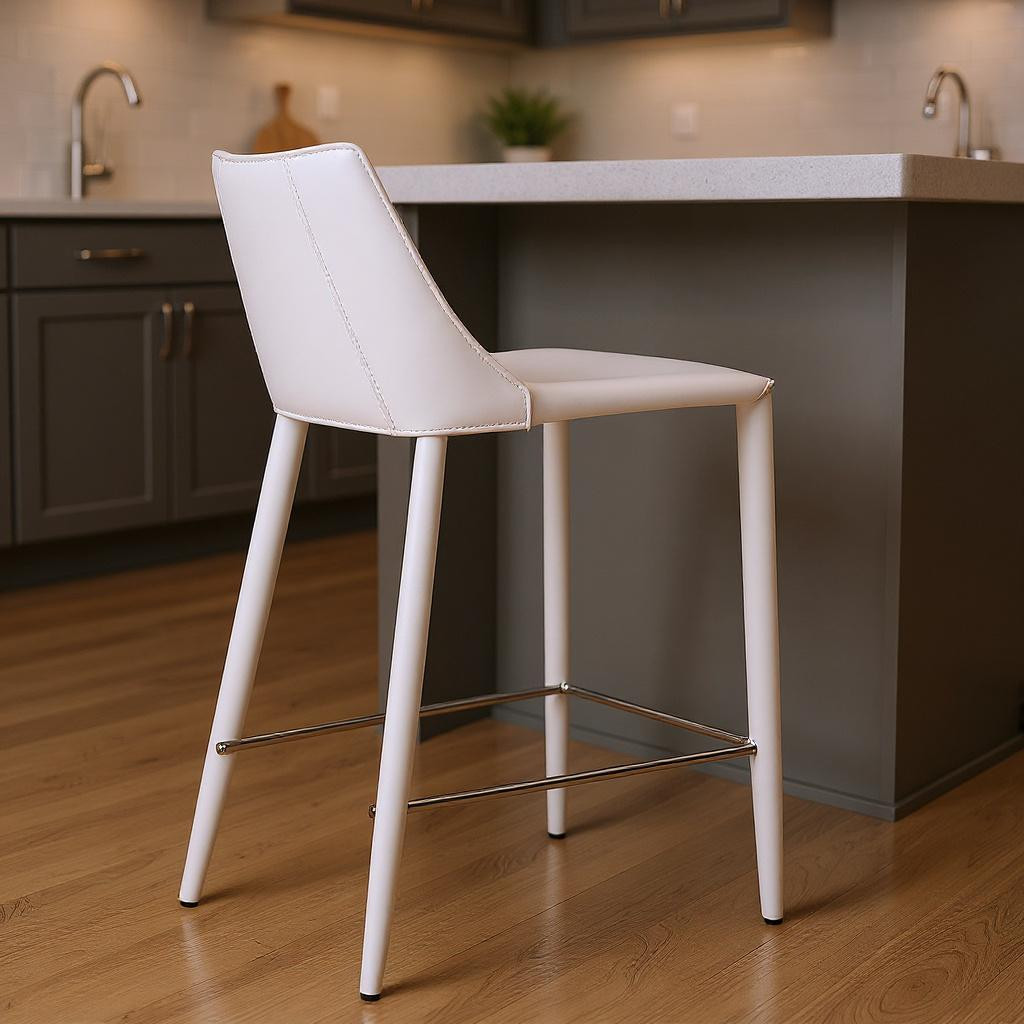 The perfect way to add some extra seating in your home, this 26-inch white steel low back counter height bar chair with footrest will elevate the look and vibe of your room. The base of this stool is made from steel in a white, that matches the upholstered, also in white. The square shape of the seat combines with a low back to give this chair a comfortable and fashionable look. Designed with a footrest for comfort and convenience. 36.03-inch H x 18.12-inch W x 21.07-inch D