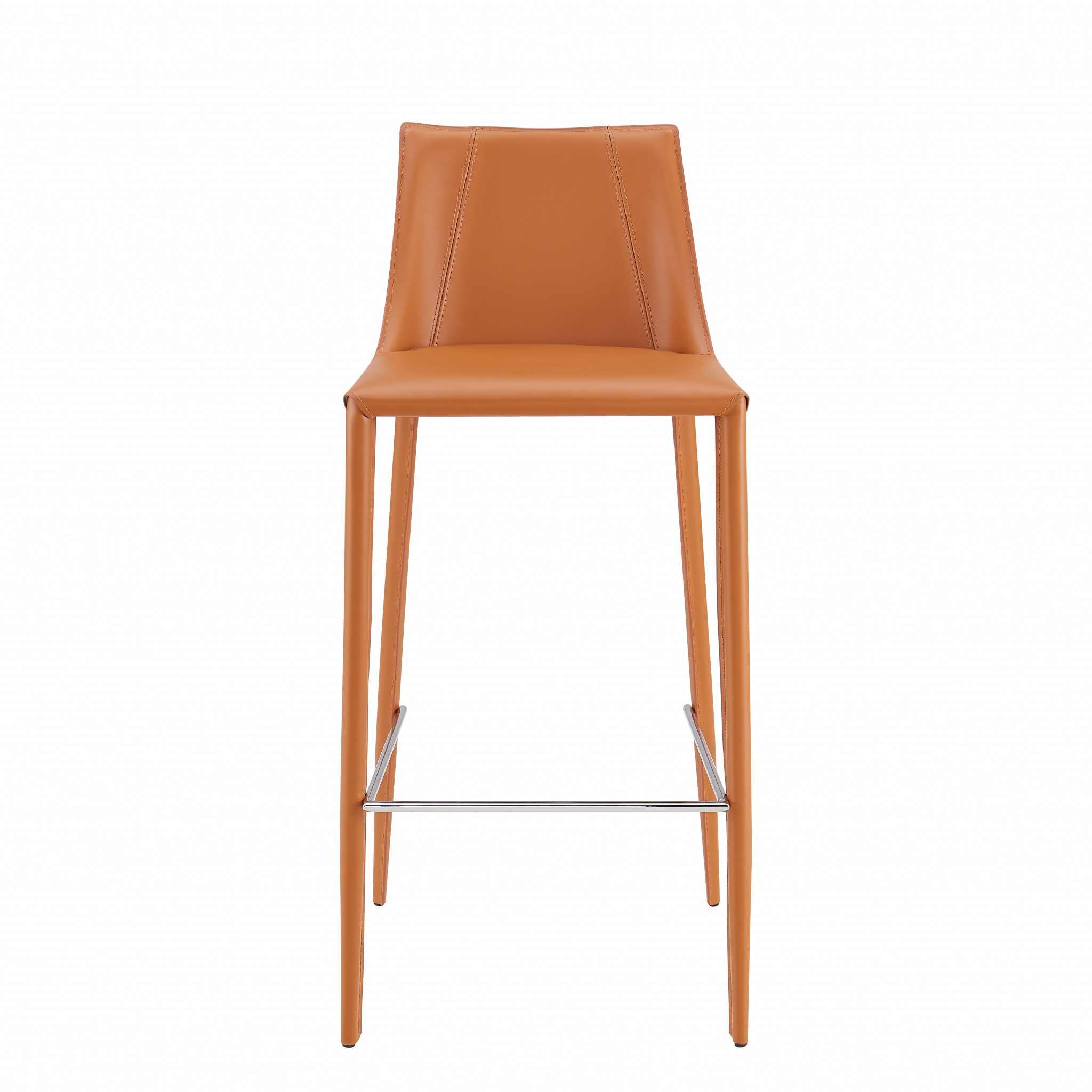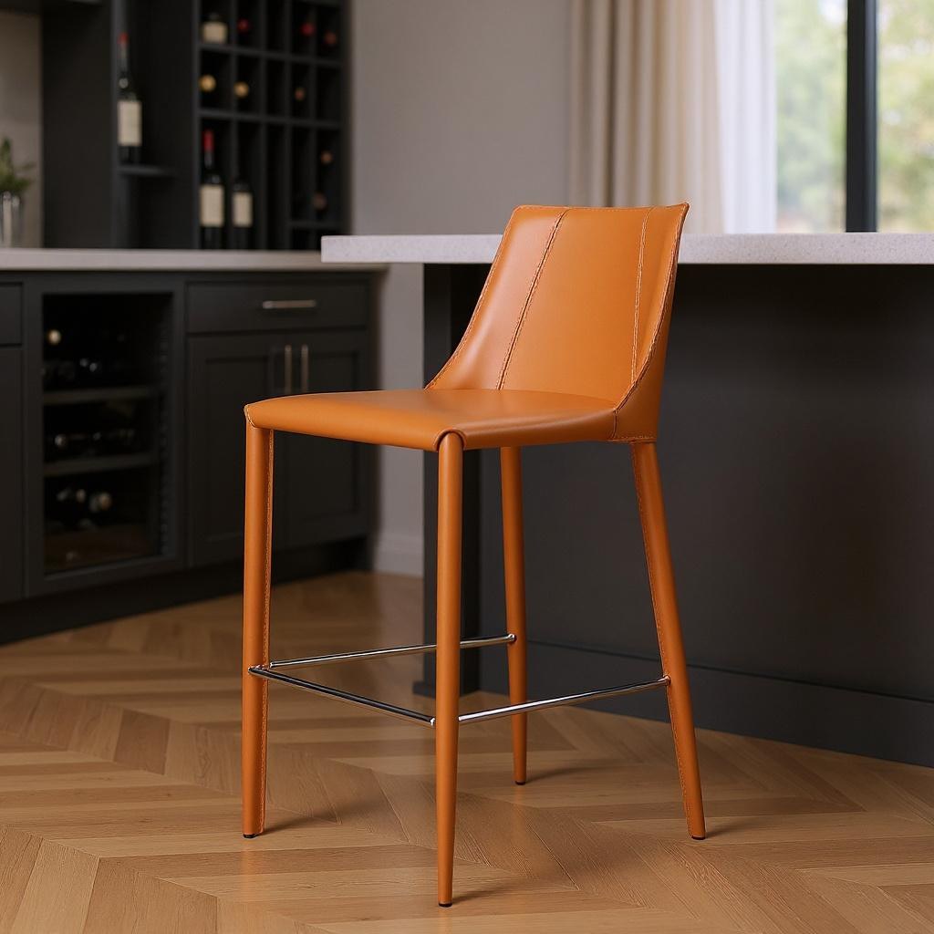 Comfort and design come together nicely in this 30-inch terra cotta steel low back bar height bar chair with footrest. A solid terra cotta steel frame is finished off with a matching terra cotta upholstered seat, giving this chair a chic monotone look. The square shape of the seat combines with a low back to give this chair a comfortable and fashionable look. Designed with a footrest for comfort and convenience. 39.97-inch H x 18.12-inch W x 21.07-inch D