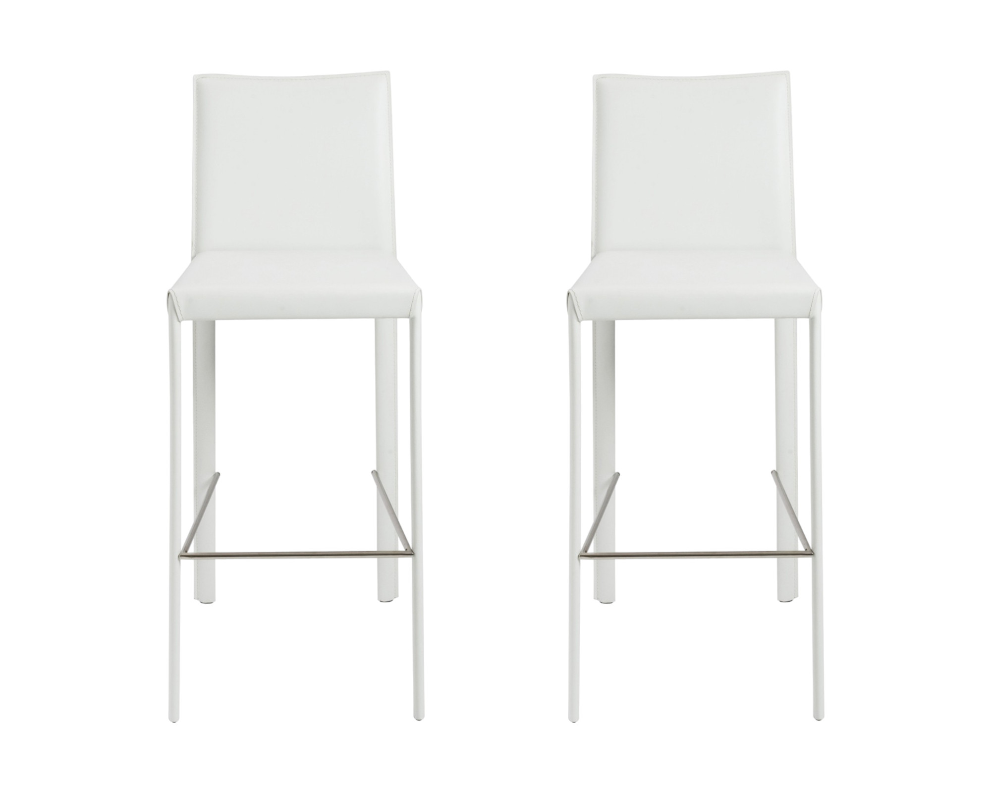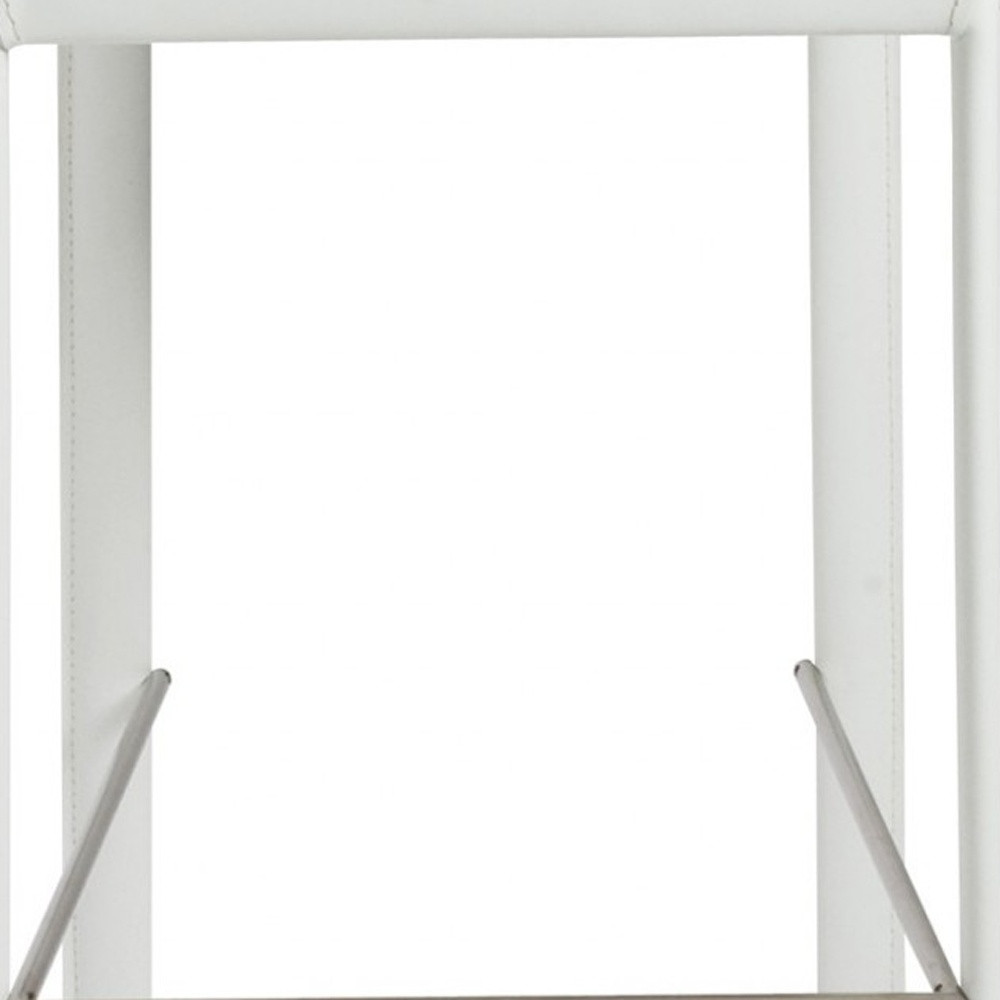 The perfect way to add some extra seating in your home, this set of two 30-inch white steel low back bar height bar chairs with footrest will elevate the look and vibe of your room. A solid white steel frame is finished off with a matching white upholstered seat, giving this chair a chic monotone look. Not only good looking and stylish, this chair features a square shaped seat and a low back for the ultimate in comfort and enjoyment. Designed with a footrest for comfort and convenience. 40.95-inch H x 17.33-inch W x 21.07-inch D