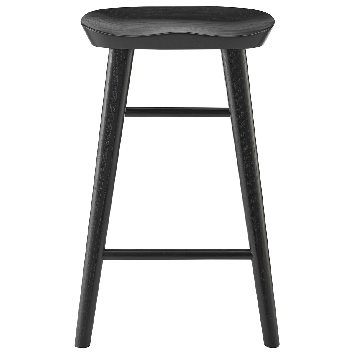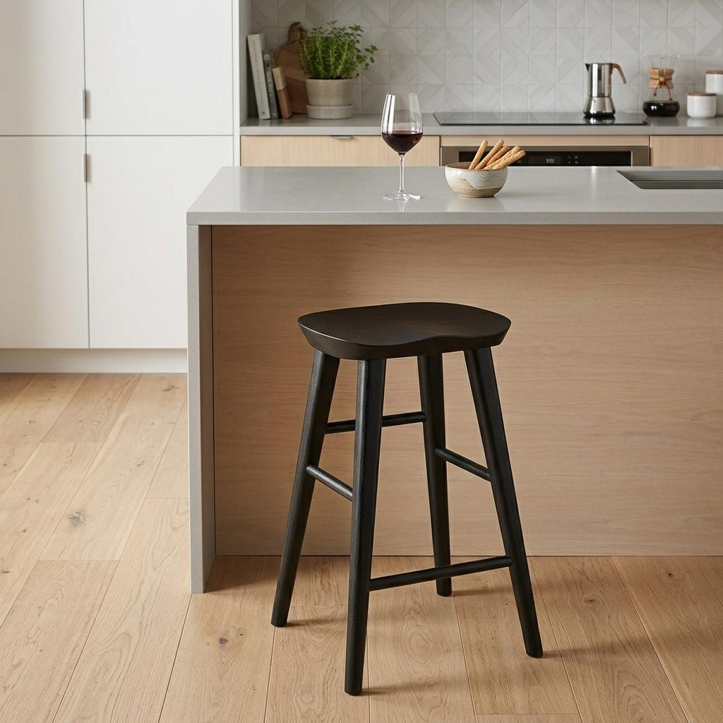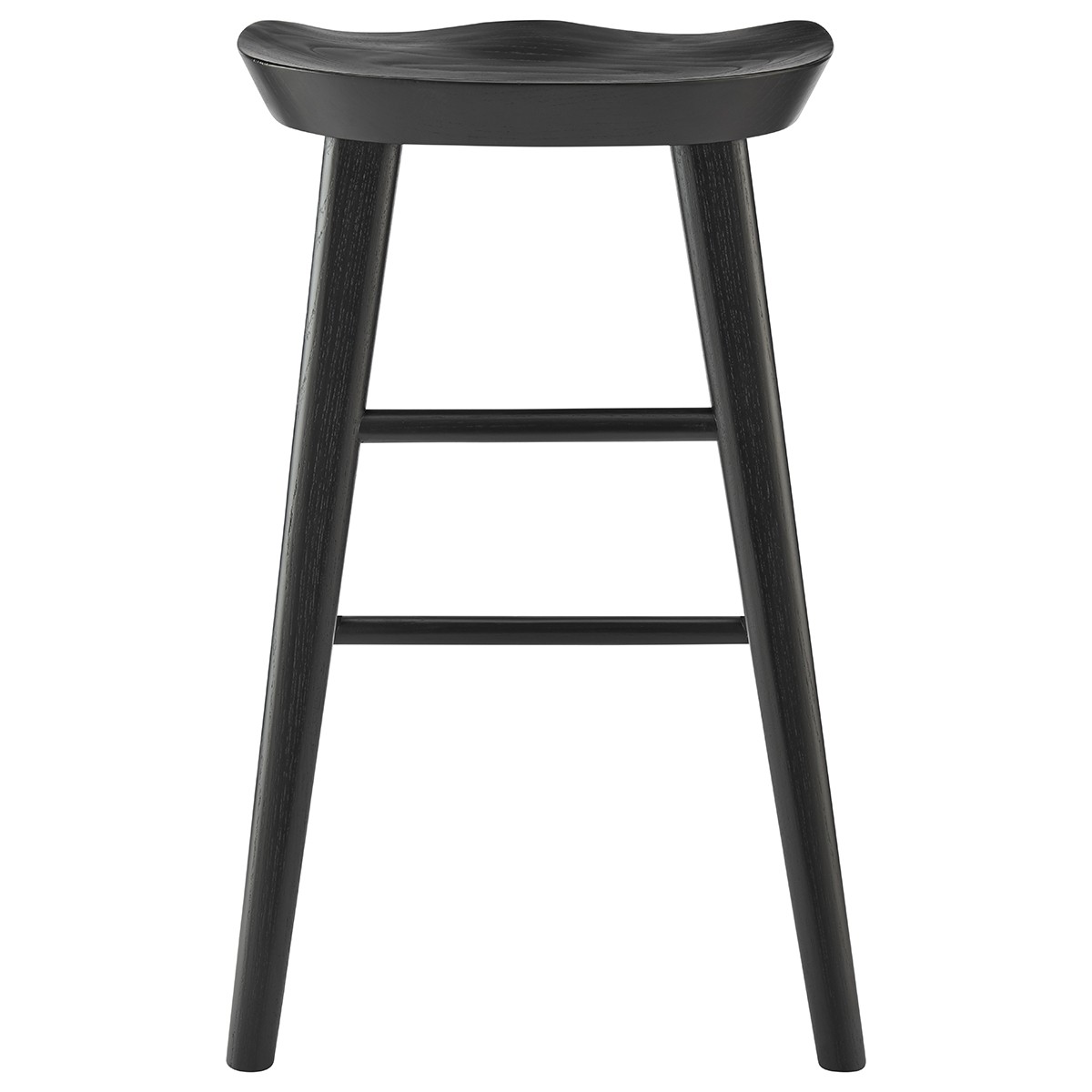 Bring a trendy bar vibe to your space, with this 25-inch black solid wood backless counter height bar chair with footrest. A solid black solid wood frame is finished off with a matching black solid wood seat, giving this chair a chic monotone look. The round shape of the seat give this backless chair a fresh and fashionable look. Designed with a footrest for comfort and convenience. 25.79-inch H x 16.34-inch W x 14.97-inch D