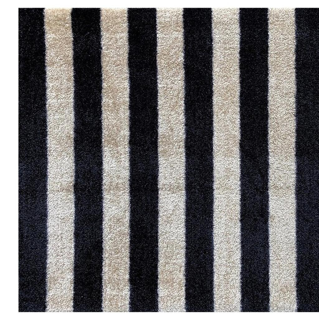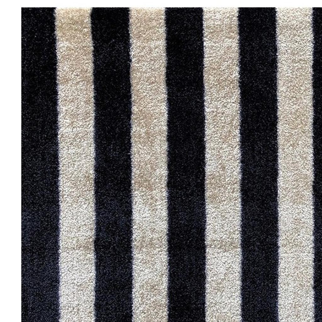 This low profile Black and Tan Wide Stripe Floor Mat is a game changer. A fade resistant slightly distressed modern black and tan wide stripe design that is a fashion forward look for a mat that is super sturdy and can easily be thrown into the washer and dryer to clean. The premier formula rubber backing used makes this nylon rug slip resistant with no need for an additional pad, and the backing will hold up during the wash and dry! The low profile means it easily fits under doors. Combine fashion and style with real life functionality with this great area rug/door mat. 20-inch H x 27.5-inch W x 1-inch D