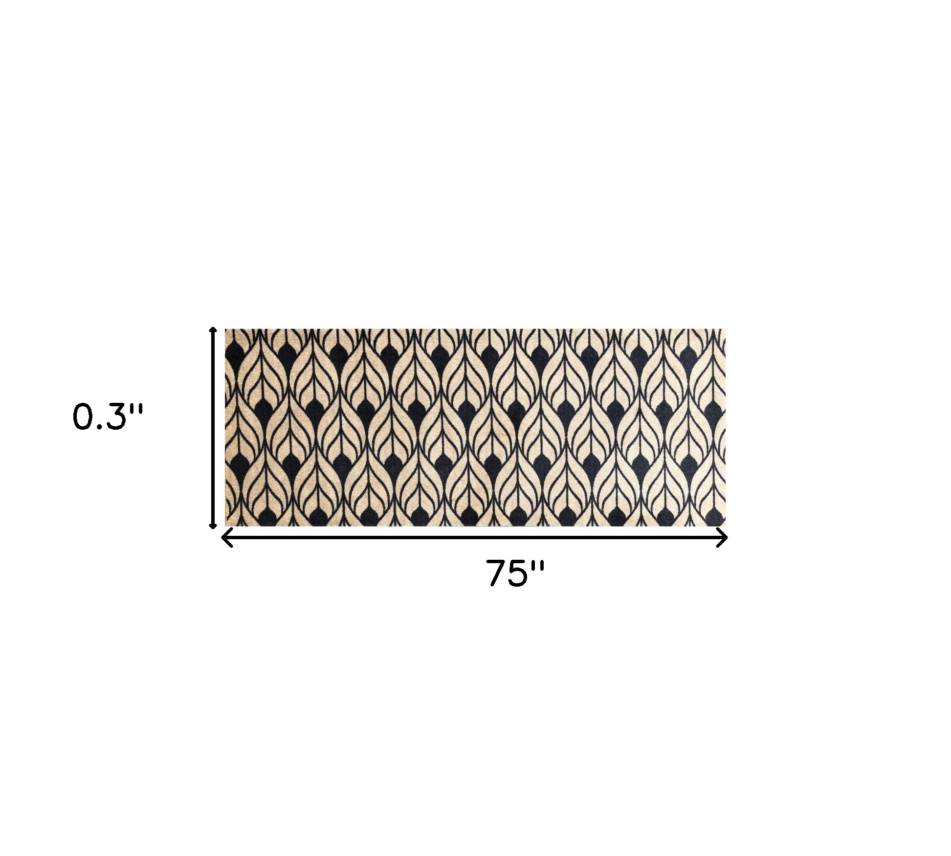 This low profile Graphite and Tan Abstract Leaves Washable Floor Mat Runner Rug is a game changer. A fade resistant, slightly distressed, modern geometric abstract leaves design that pairs a sandy tan background with dark graphite gray for a fashion forward look that is super sturdy and yet can easily be thrown into the washer and dryer to clean. The premier formula rubber backing used makes this nylon rug slip resistantr with no need for an additional pad, and the backing will hold up during the wash and dry! The low profile means it easily fits under doors. Combine fashion and style with real life functionality with this great area rug/door mat. 27.5" x 75" x .3"