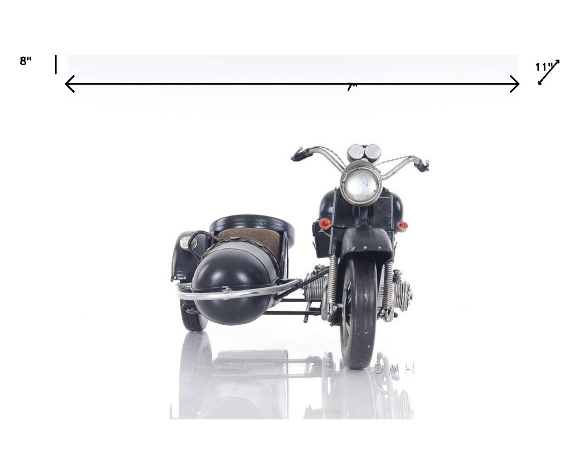 Bring some sizzle to your space with this eye-catching 8" black metal hand painted decorative motorcycle. High-quality metal used in this black sculpture is both good looking and hard wearing. Great to use on its own or mix with other decorations for the perfect look. Use this piece as bookshelf decor, on your desk, coffee table, or anywhere in your home. 8" H x 7" W x 11" D