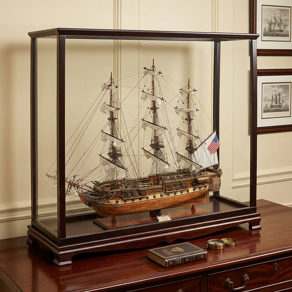 Add an air of fashion to your room and rejuvenate the space with this 39-inch wood brown solid wood hand painted 1797 uss constitution large table top display case model boat. High-quality solid wood used in this wood brown sculpture is both good looking and hard wearing. This replica makes a great tabletop accent for your coffee table, desk, bookshelf, dresser or mantle. A perfect decorative addition for anyone who loves nostalgia and vintage style models and replicas. It's a perfect addition for those who love an up-to-the-minute look and feel. 39.25-inch h x 40-inch w x 13.75-inch d.