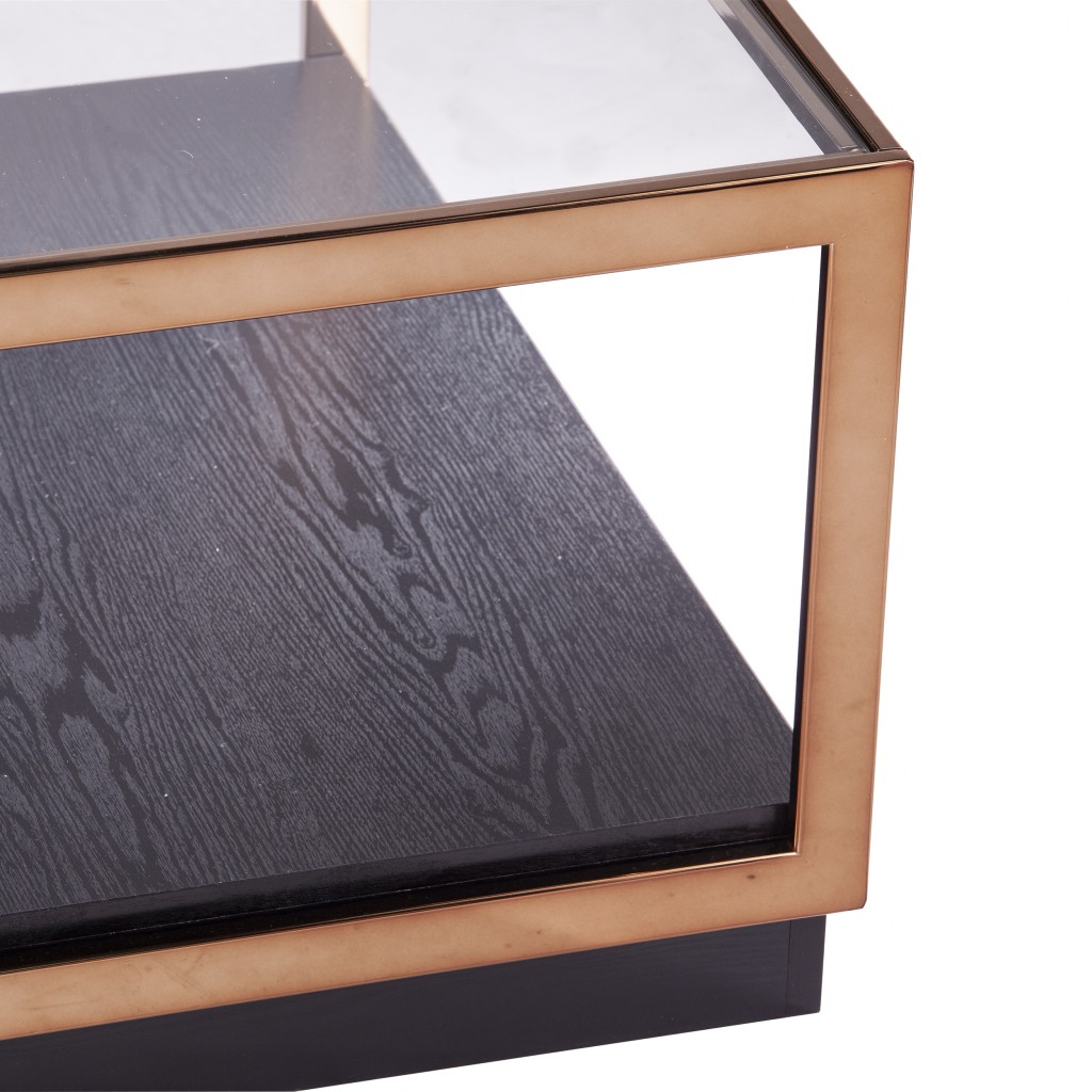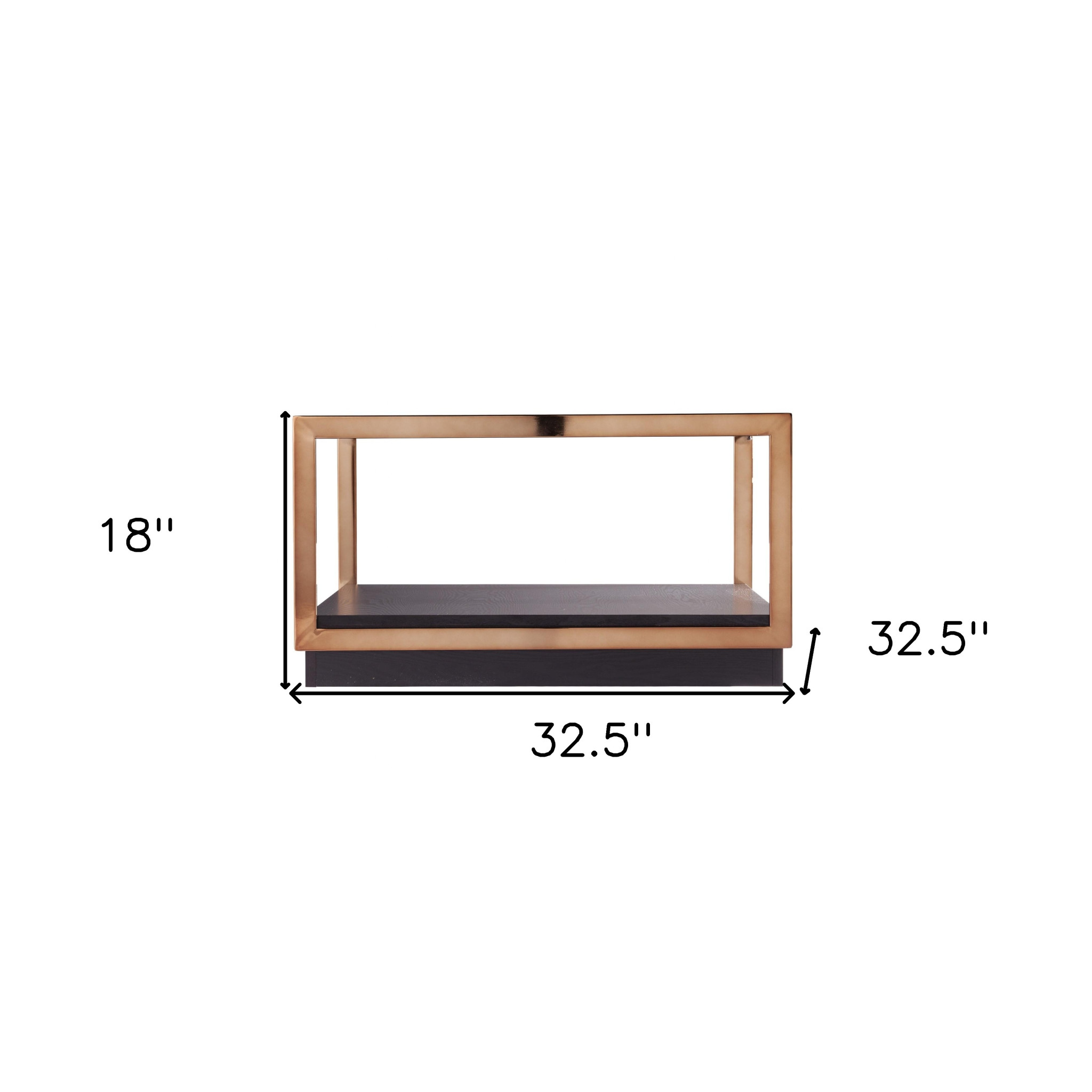 Stylish and super sturdy, the 33" champagne glass and solid manufactured wood square coffee table is an amazingly good looking coffee table that will compliment your living room. This coffee table is expertly made from high quality metal. A sleek champagne monotone color gives this solid manufactured wood and glass table a fresh and updated look. This square table utilizes its unique shape to give your room a modern geometric accent. This table features an updated monotone color scheme with champagne as the main color on both the top and the base. If you're looking for something that can fit both into a living area, bedroom, or office, this coffee table is for you. This coffee table is the sturdy, reliable and stylish answer to your living room needs. 18" H x 32.5" W x 32.5" D